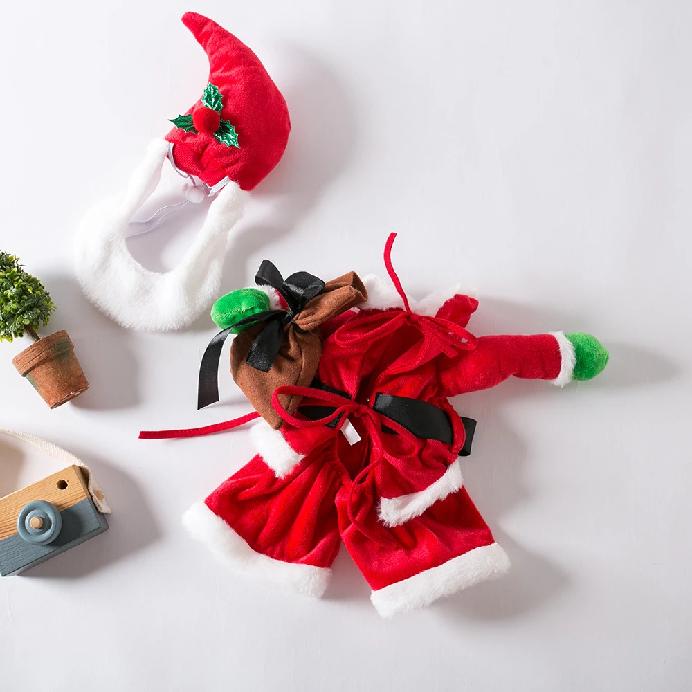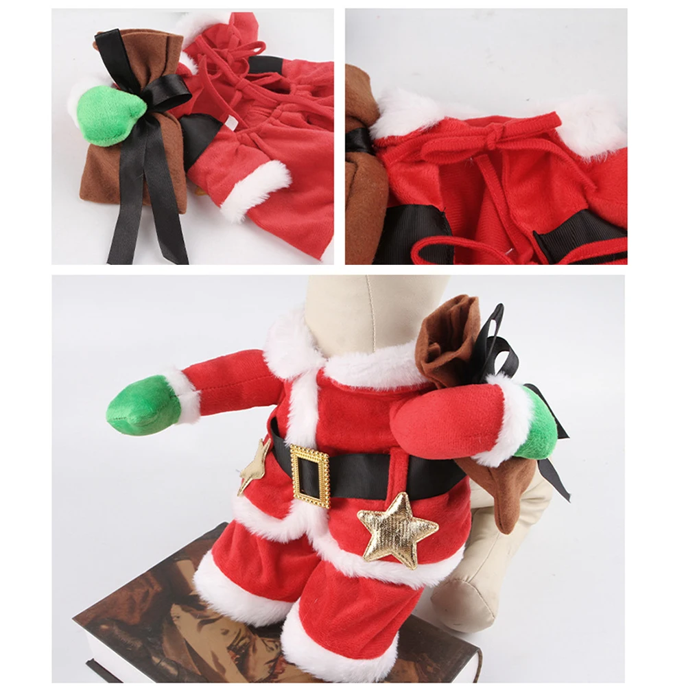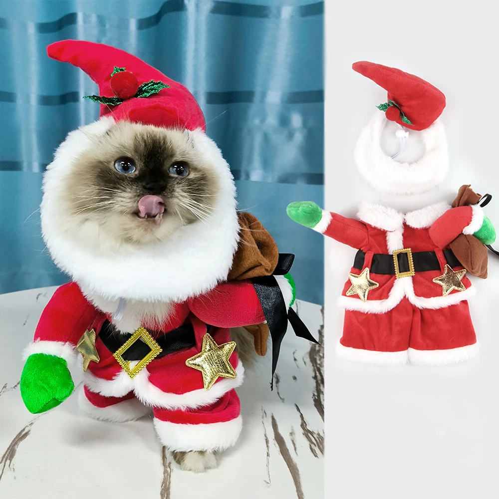 Disfraz de Papá Noel para perros y gatos, ropa de Navidad para mascotas, abrigo divertido para cachorros, traje de chaqueta con gorro, ropa cálida de invierno