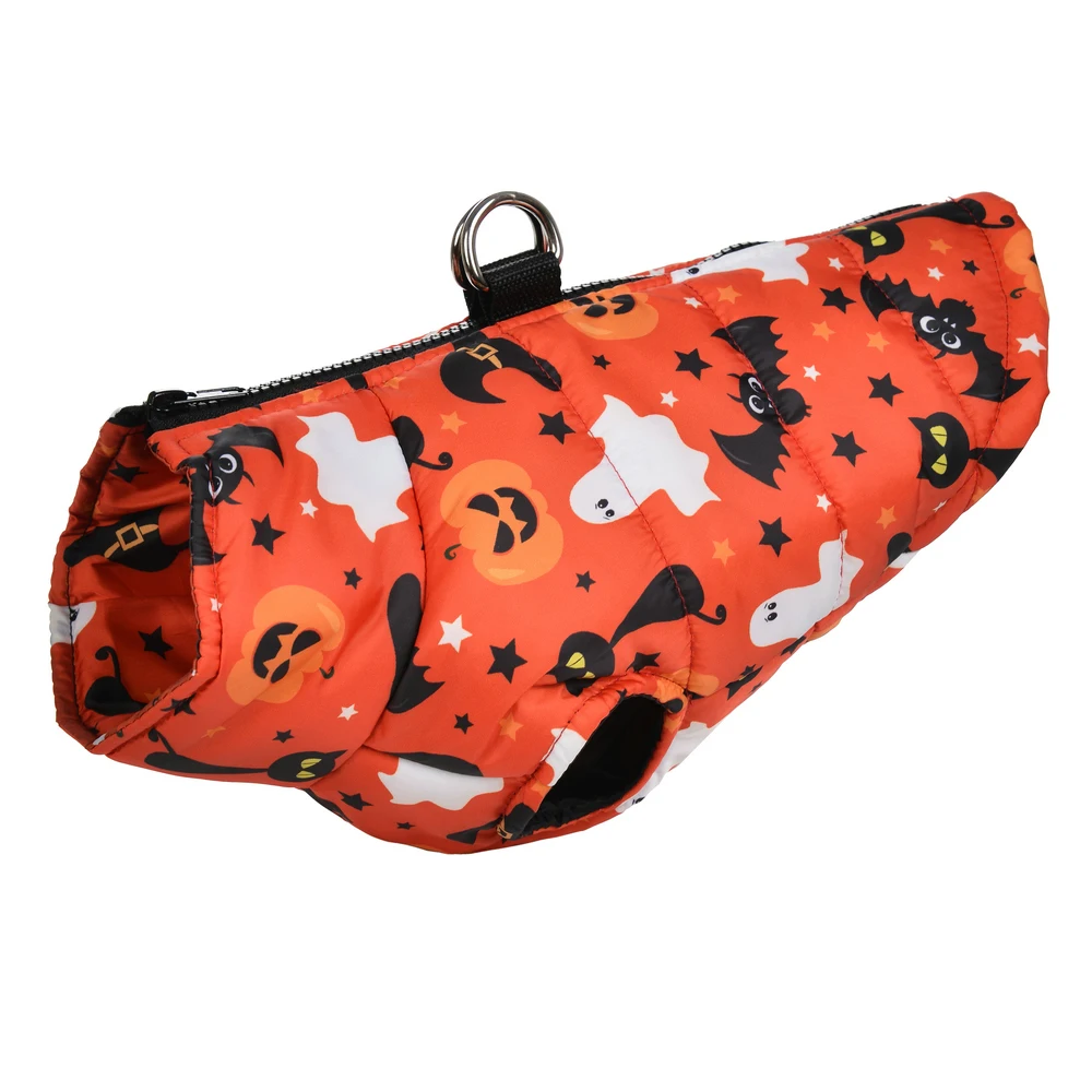 Traje: Chihuahua, Bulldog Francés, Yorkie, Dachshund, Beagle, Schnauzer, Vodles, Pitbull.Estampado: calabaza, murciélago, fantasma, telaraña.Temporada: Otoño/Invierno