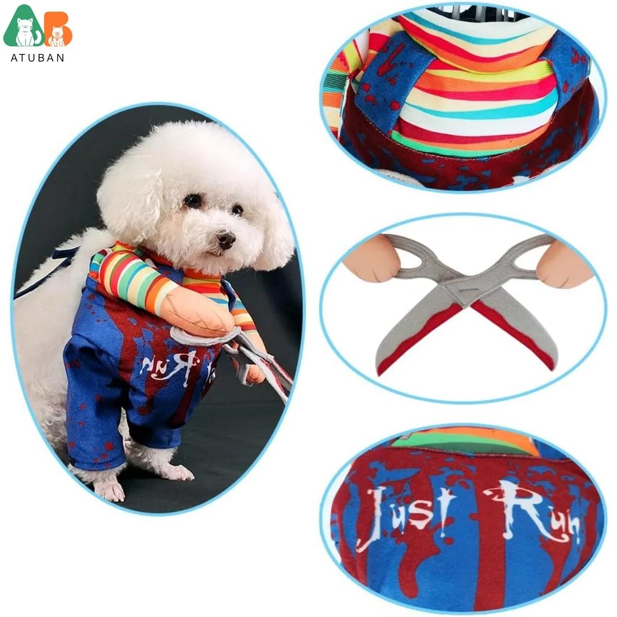 En medio de la noche, el jardinero corta las flores del jardín con sus tijeras.Los perros usan este lindo disfraz de muñeca de tijera, que puede hacer de tu perro la estrella de la fiesta de Halloween.