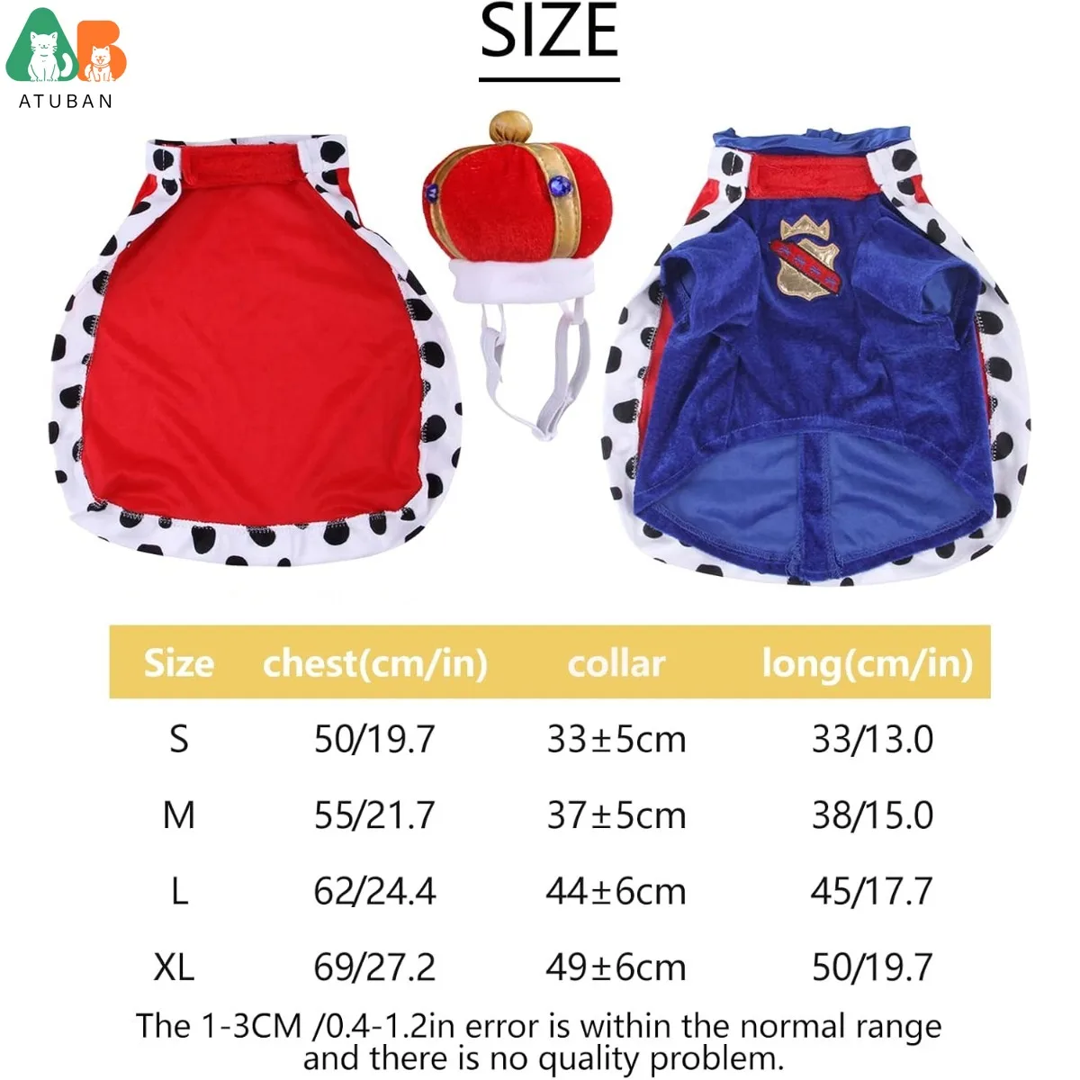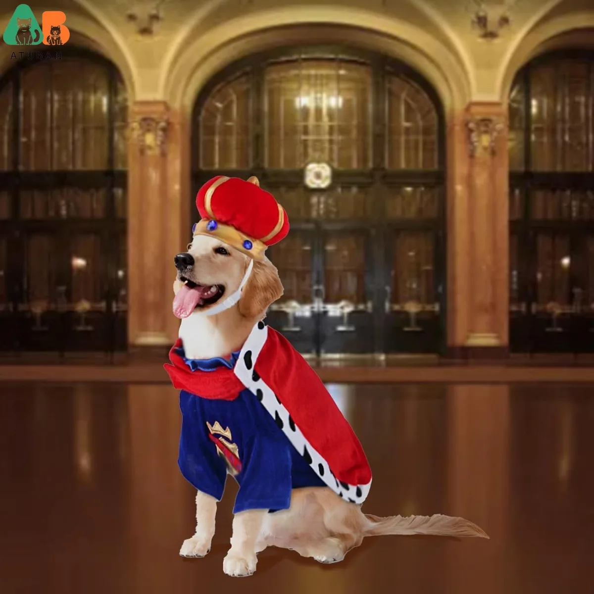 Disfraz de perro rey, capa de perro real, corona de terciopelo, trajes para mascotas, ropa para gato, perro, Cosplay, fiesta, vacaciones, vestido divertido