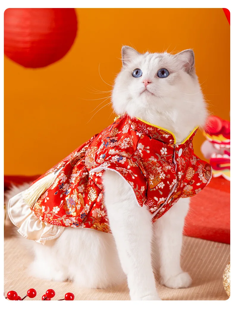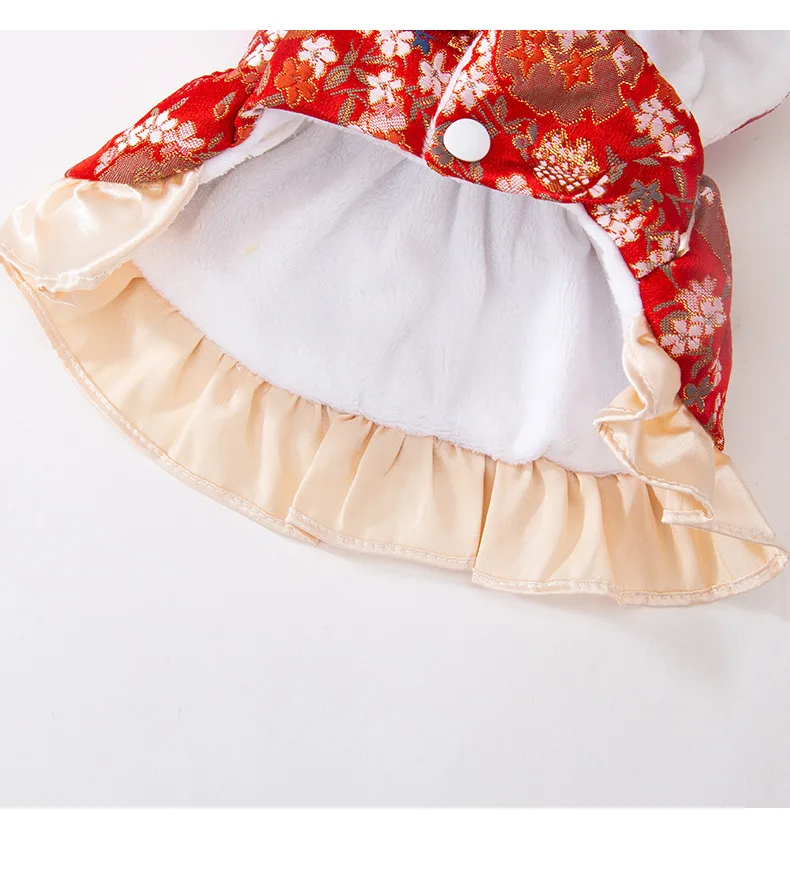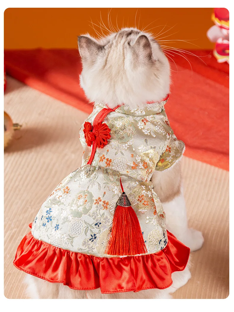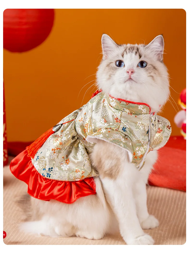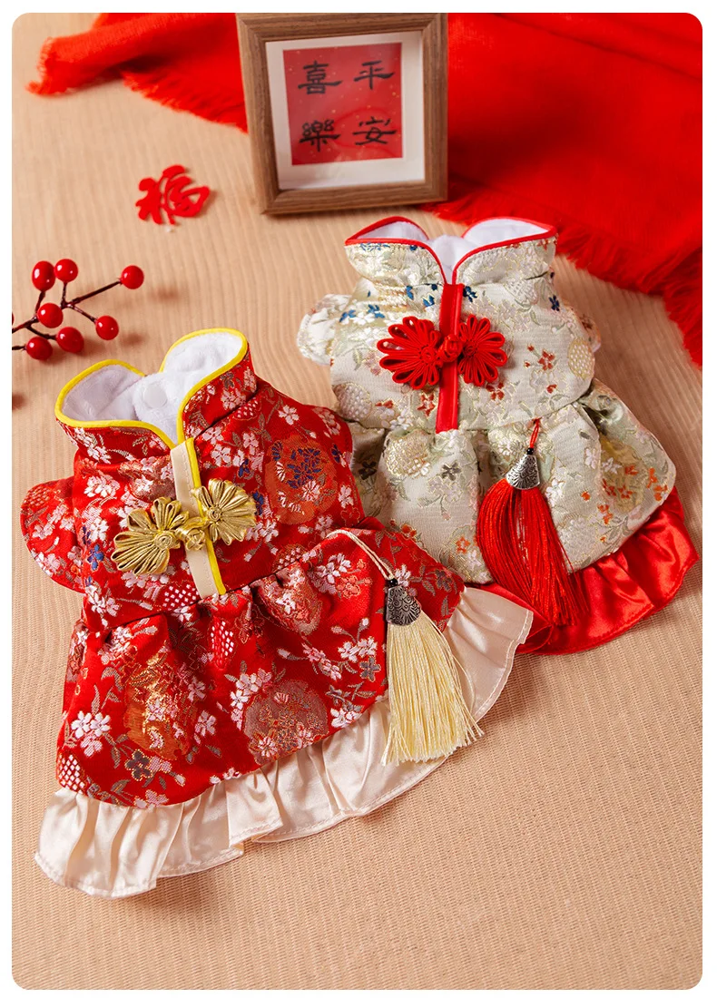 Disfraz Tang con borlas de cien flores de Año Nuevo, falda de felpa para otoño e invierno, vestido de estilo palaciego para mascotas de Año Nuevo para perros