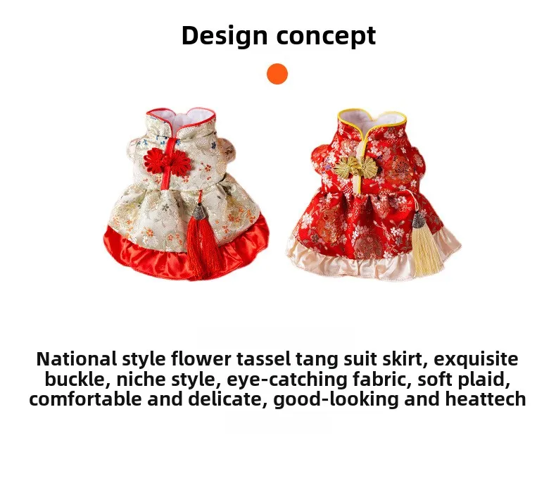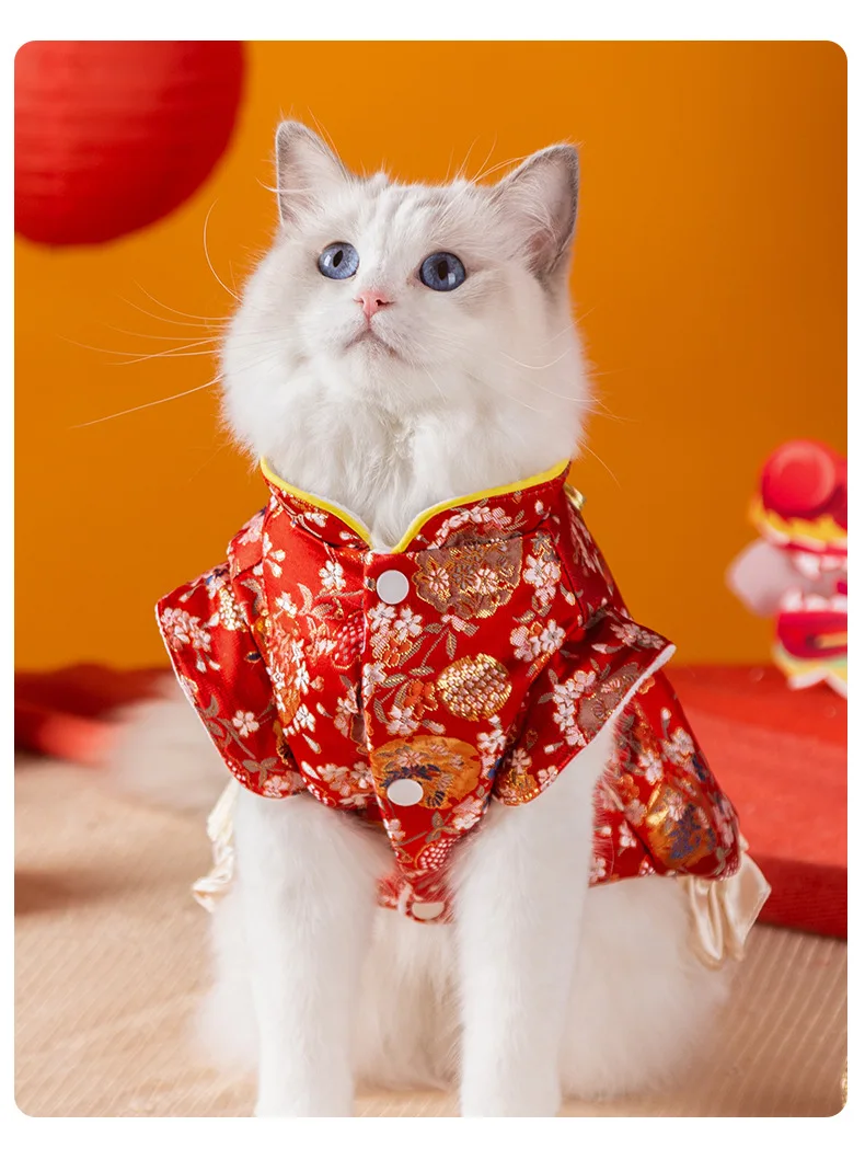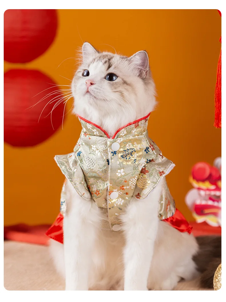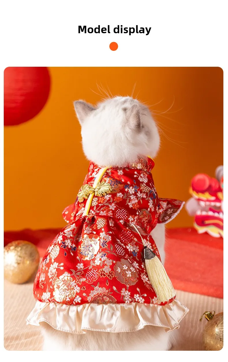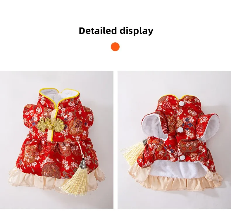 Disfraz Tang con borlas de cien flores de Año Nuevo, falda de felpa para otoño e invierno, vestido de estilo palaciego para mascotas de Año Nuevo para perros