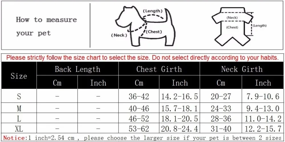 XL: Circunferencia del cuello: 31-40cm/12,2-15,7 pulgadas; Circunferencia del pecho: 53-62cm/20,8-24,4 pulgadas;