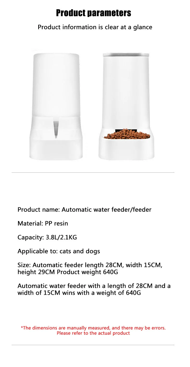 Tamaño: Alimentador automático longitud 28CM, ancho 15CM, altura 29CM peso del producto 640G