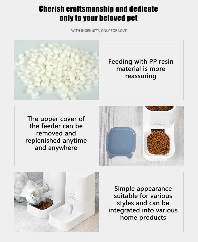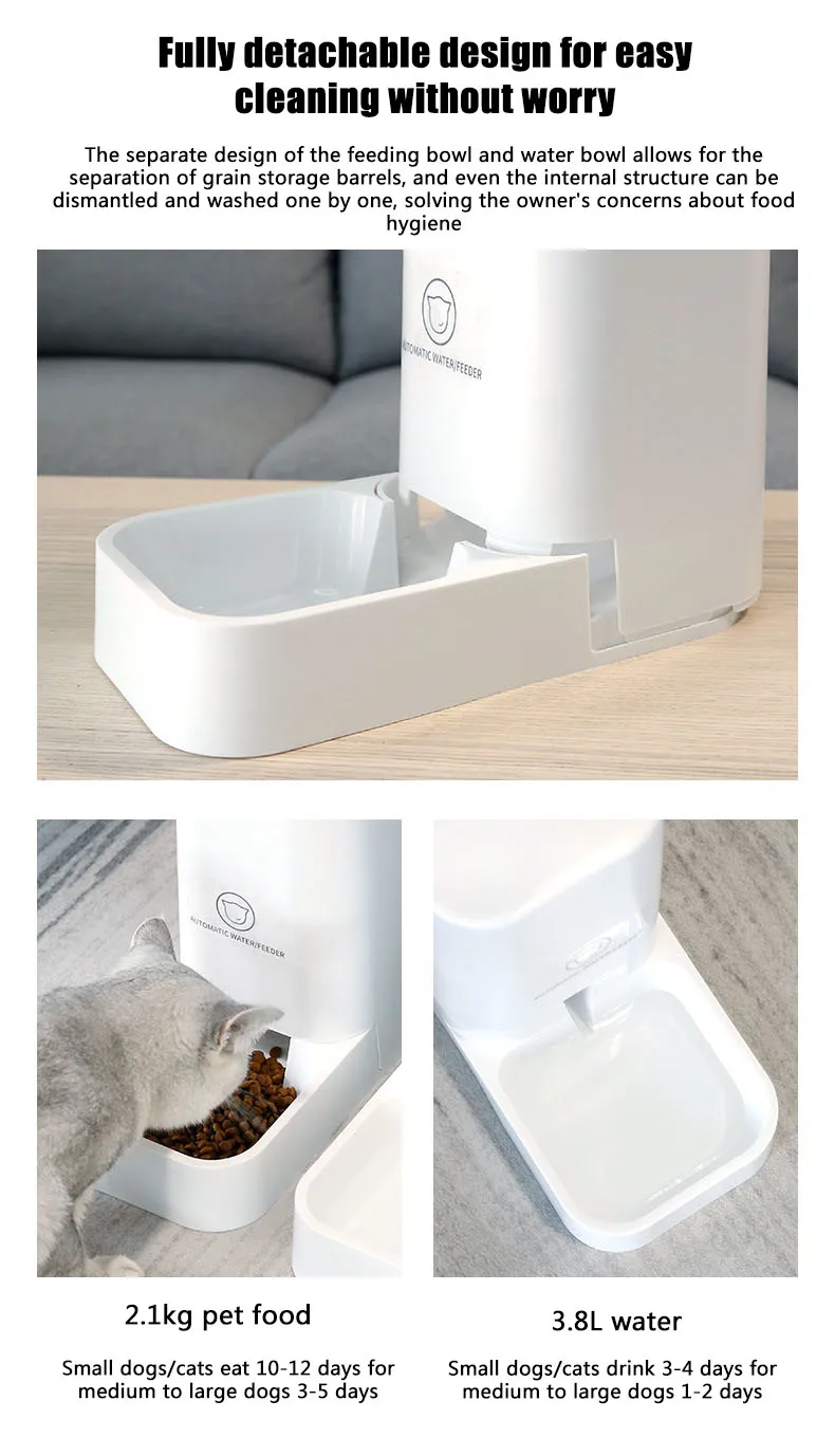 El diseño separado del Tazón de alimentación y el tazón de agua permite la separación de los barriles de almacenamiento de granos, e incluso la estructura interna se puede desmontar y lavar uno por uno, resolver las preocupaciones del propietario sobre la higiene alimentaria