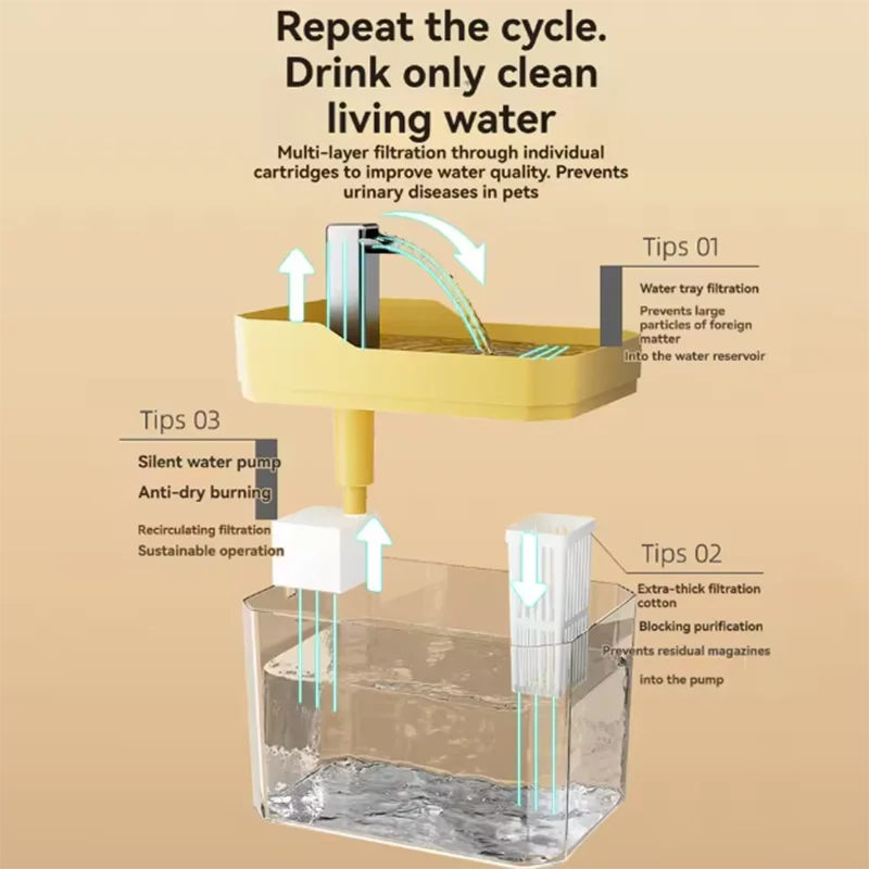 Dispensador de agua para gatos con bomba, filtro de agua, silencioso, antiseco, recirculación, bebedero de flujo de agua viva para mascotas