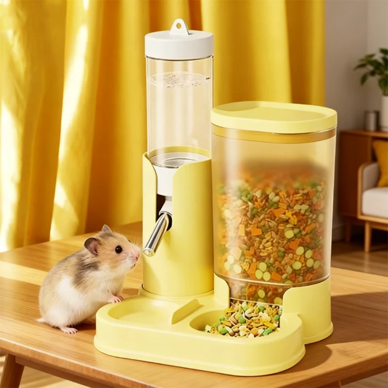 Dispensador de agua para hámster, botella de agua para hámster, dispensador automático para mascotas con Base, bebedero sin goteo con tazón de alimentación de alimentos
