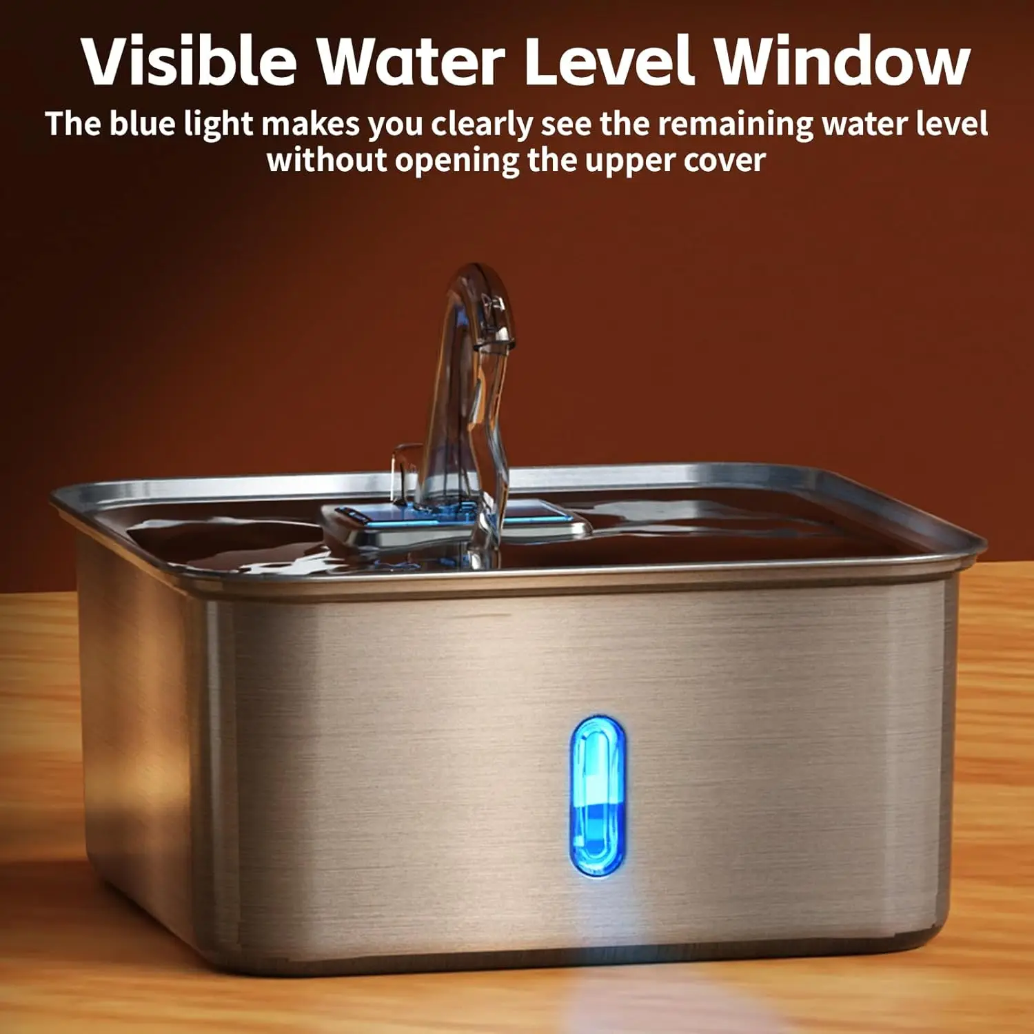 Dispensador de agua para mascotas de acero inoxidable de 7L, fuente automática para gatos, dispensador de agua inteligente para perros, tazón para beber con ventana Visual para perros grandes
