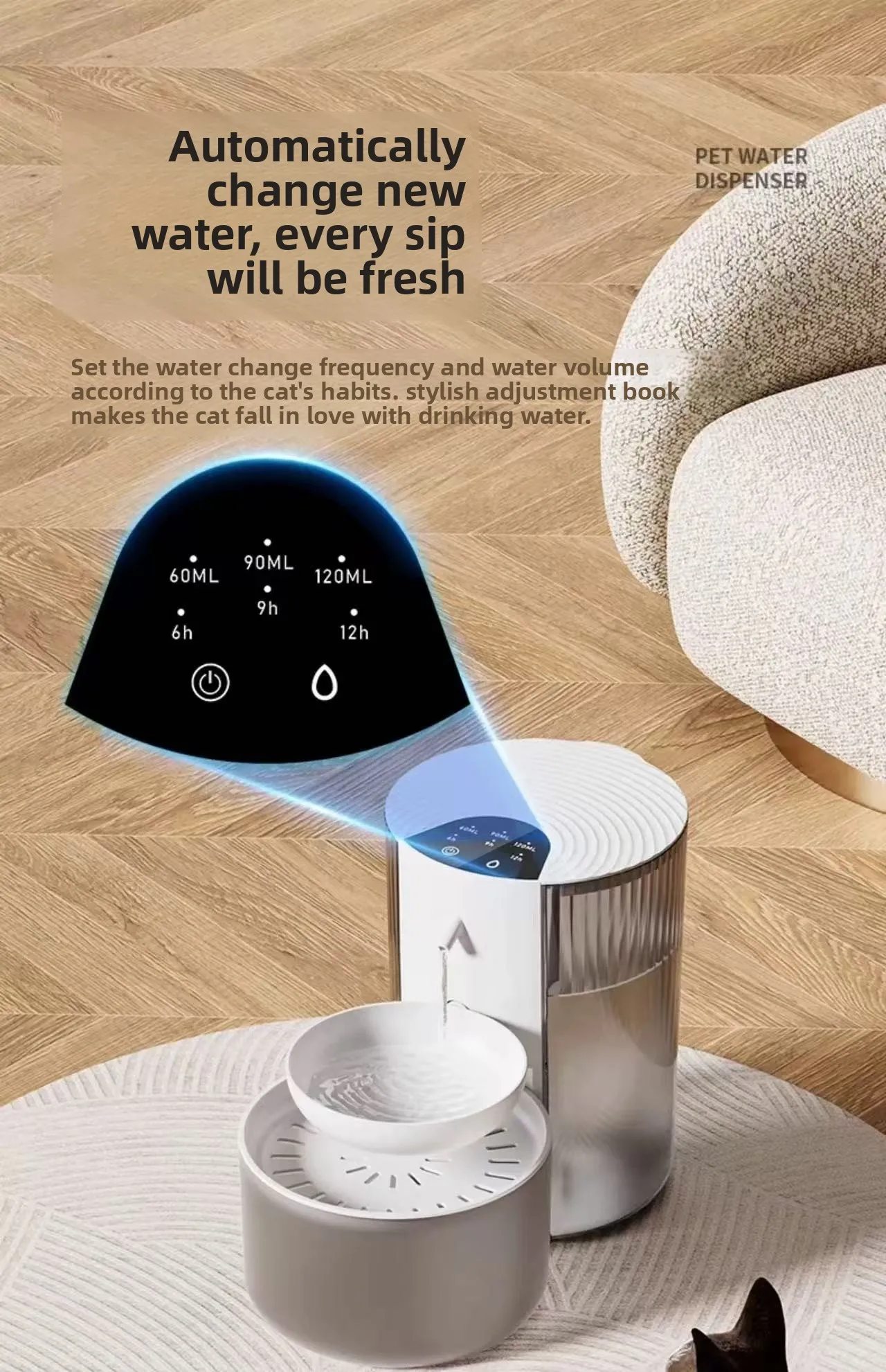 Dispensador de agua para verter mascotas, dispensador para gatos, inalámbrico, sin enchufe, alimentador de agua automático, dispensador de agua para perros, carga tipo C