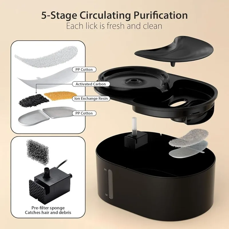 Indicador de reemplazo de filtro La fuente cuenta con una luz inteligente de recordatorio de reemplazo de filtro, que le avisará cuando llegue el momento de limpiar o reemplazar el filtro, asegurando que sus mascotas siempre tengan acceso a agua limpia y filtrada.
