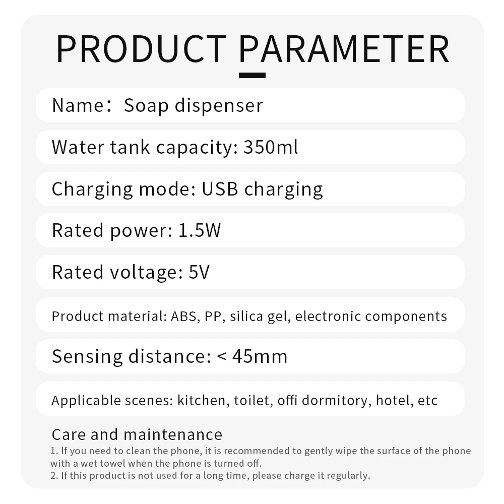 Dispensador automático de jabón, dispensador de lavado de manos recargable por USB, dispensador de jabón de inducción líquida de espuma, lavadora de manos sin contacto