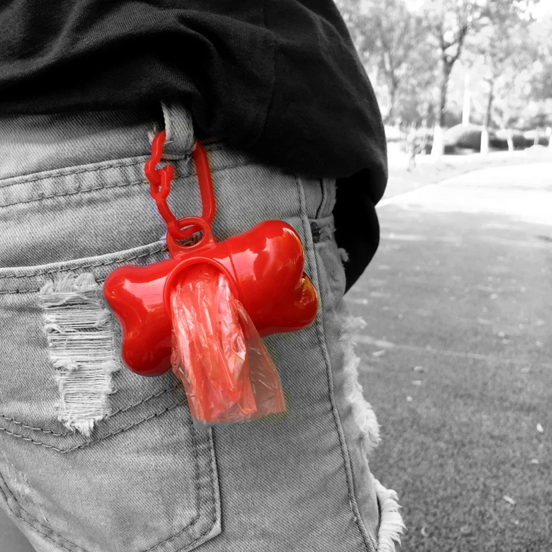 Dispensador de bolsas de basura en forma de hueso para mascotas, accesorios para animales, bolsas de basura para perros y gatos, suministros para mascotas, 7 colores