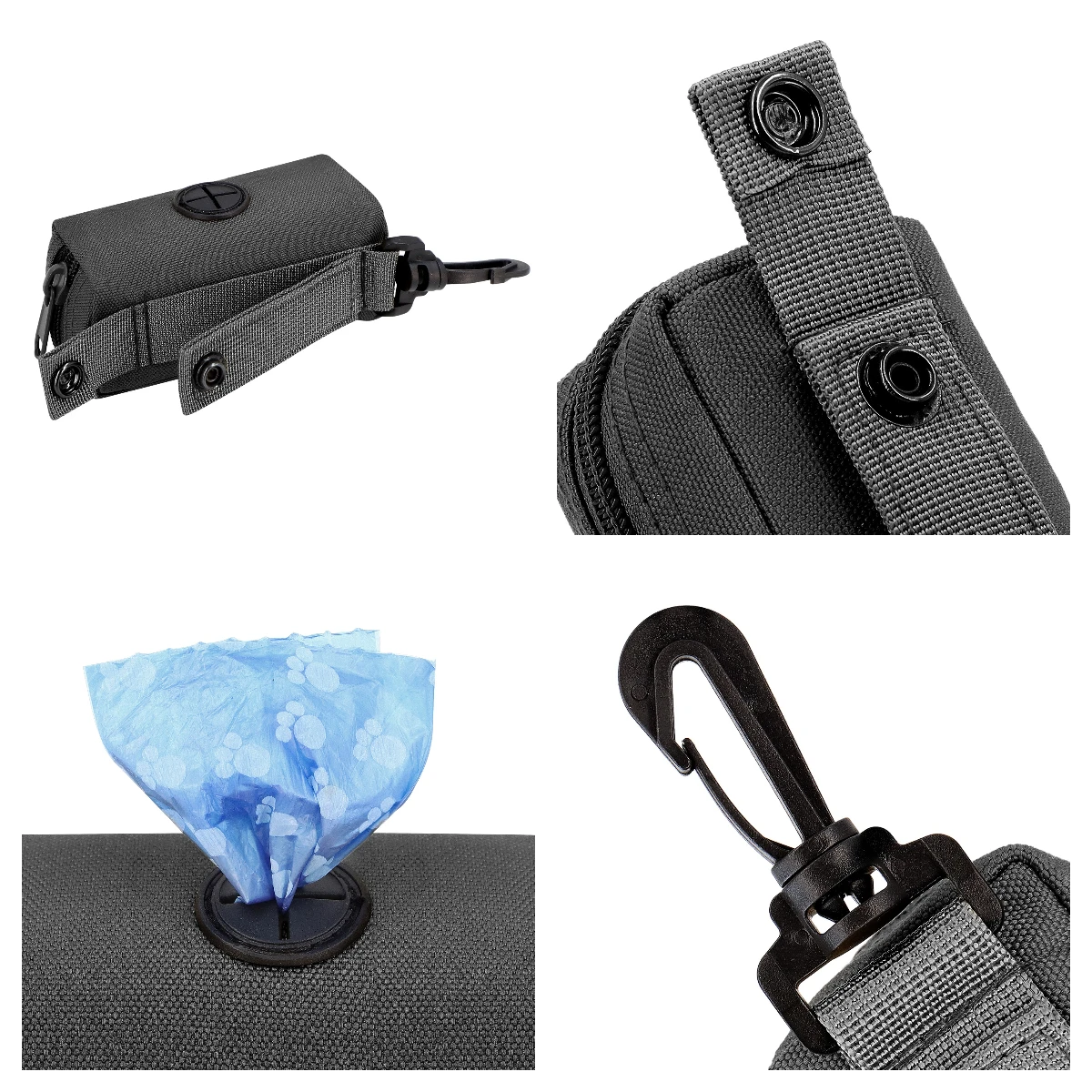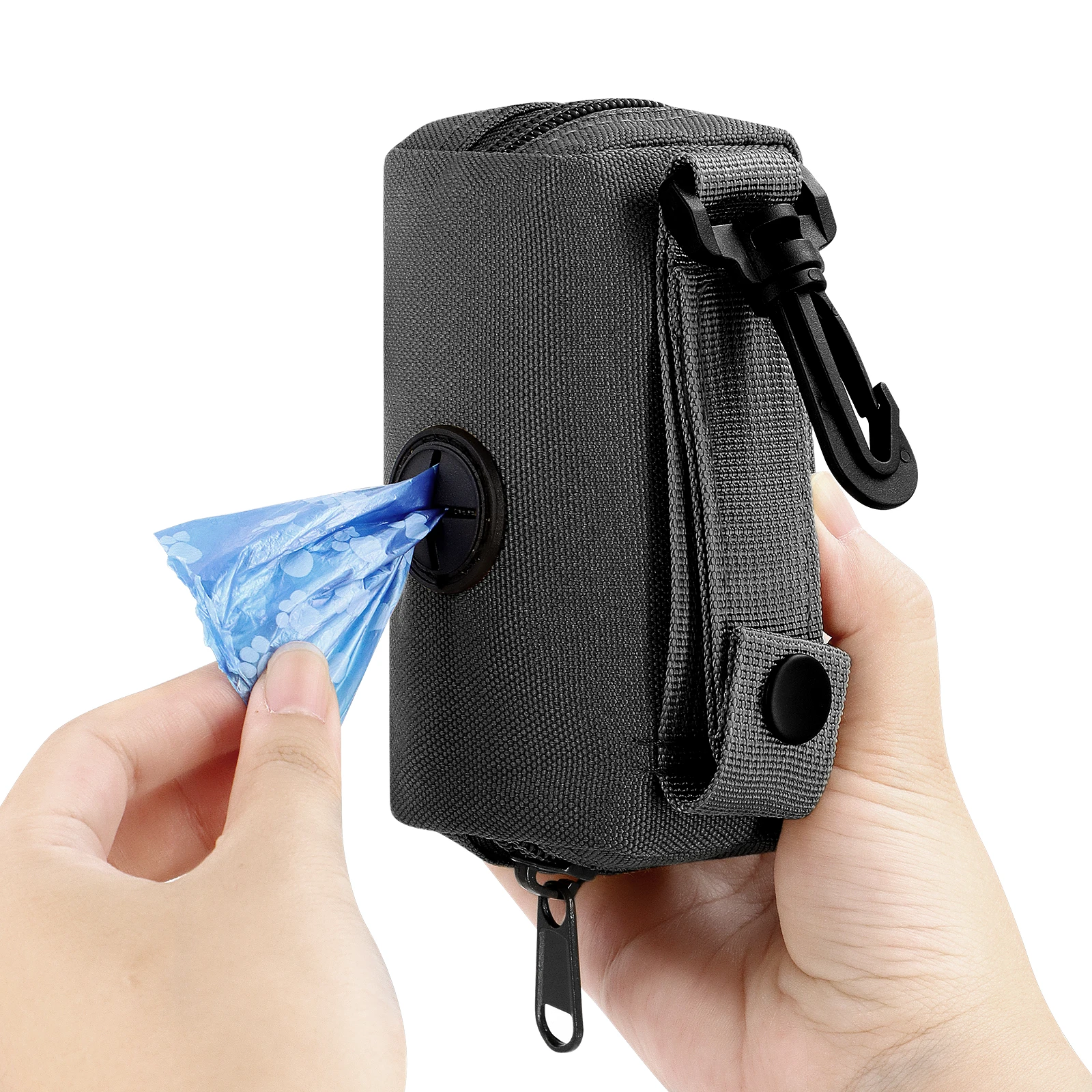 Desde una perspectiva de diseño, encarna plenamente la comodidad.Equipado con una hebilla de escalada resistente, puede colgarlo fácilmente en el chaleco, el arnés para el pecho de su mascota o su propio bolso sin preocuparse de que se caiga.El dispensador está especialmente diseñado con una abertura que le permite acceder fácilmente a la bolsa del inodoro.Cuando sea necesario, puedes sacar uno fácilmente, lo cual es muy conveniente.