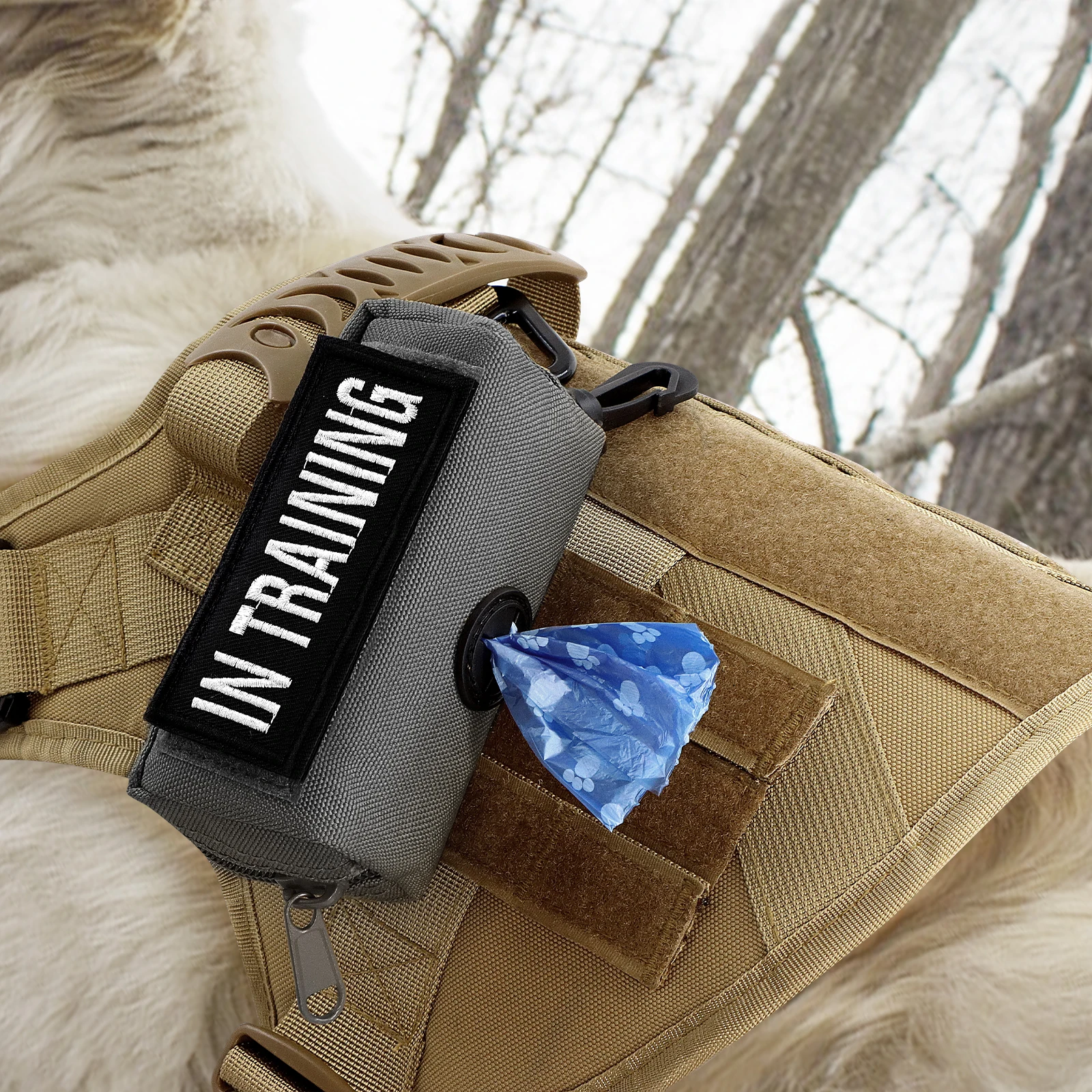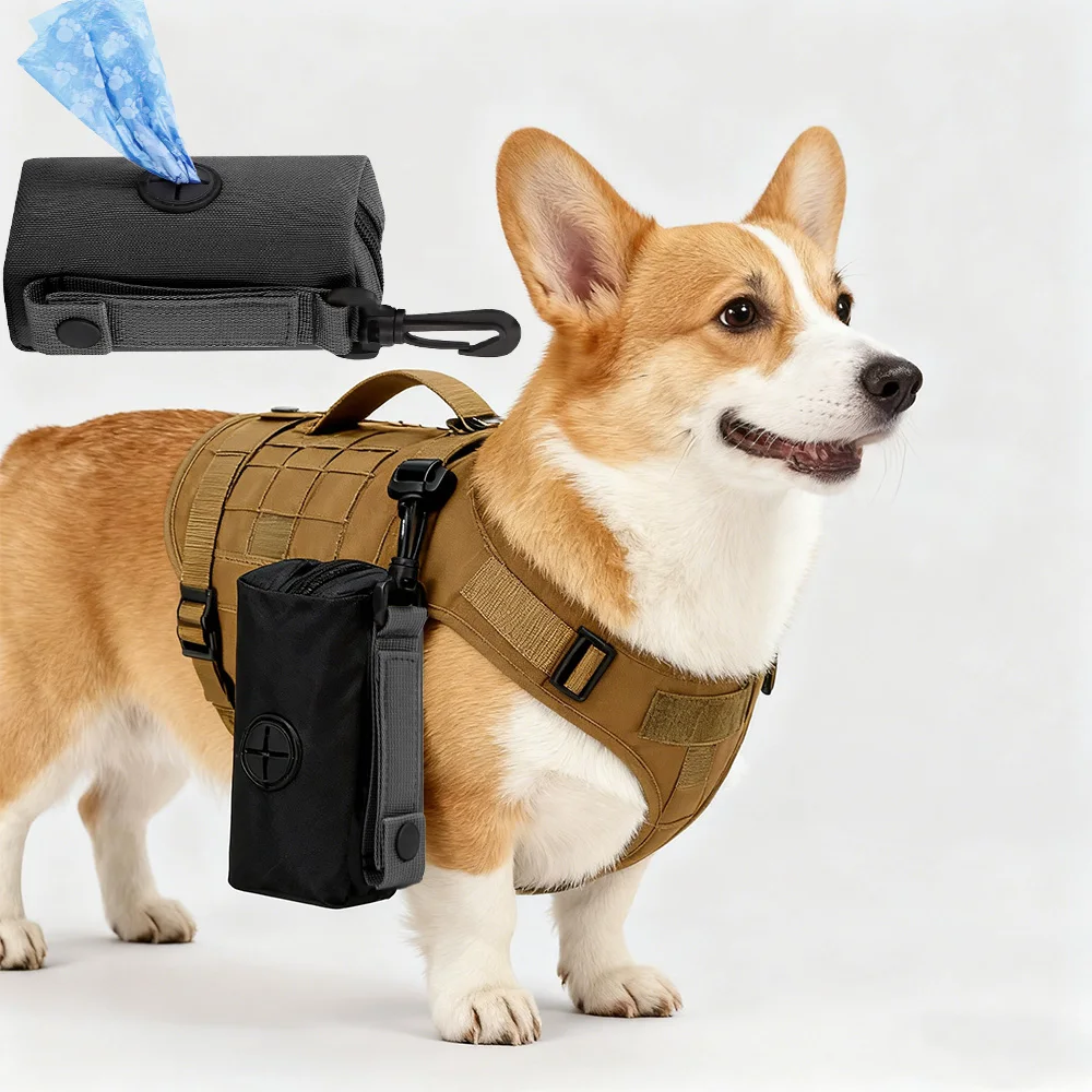 Dispensador de bolsas de basura para mascotas con gancho, soporte para bolsas de excrementos de perro para chaleco y arnés para perros, bolsa de basura portátil para mascotas, suministros para mascotas