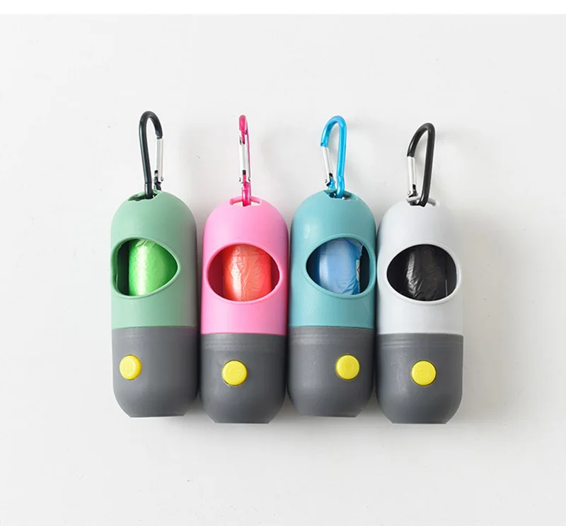 Dispensador de bolsas de basura para mascotas con luz Led para perros, gatos, bolsas para excrementos de perros, soporte para bolsas de basura, dispensadores, accesorios de limpieza para mascotas