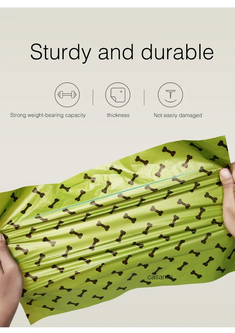 Dispensador de bolsas de basura para perros, soporte para bolsas de basura de plástico, estuche portador, bolsas para excrementos de residuos de perros, 15 Uds./rollo