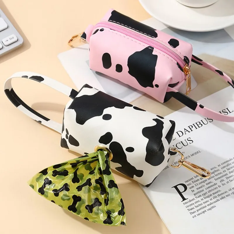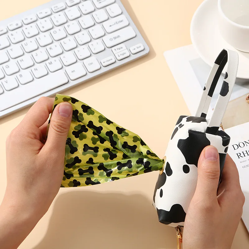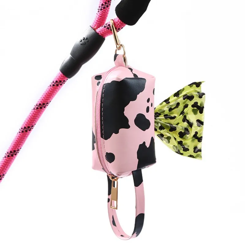 Dispensador de bolsas de caca de perro con patrón de leopardo, soporte de bolsas de cuero PU para perros, suministros para mascotas