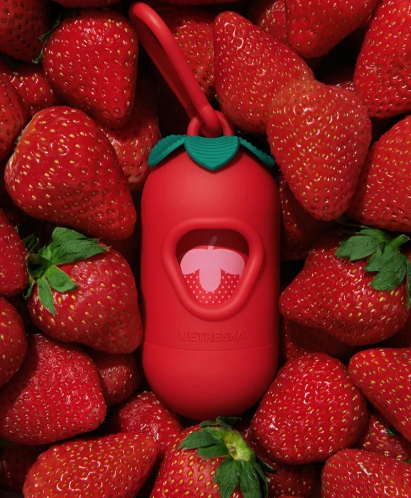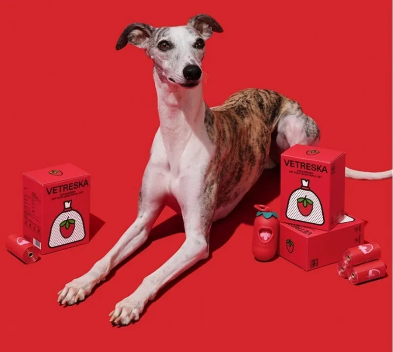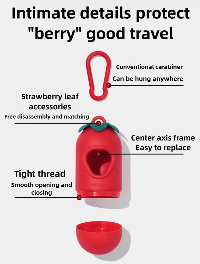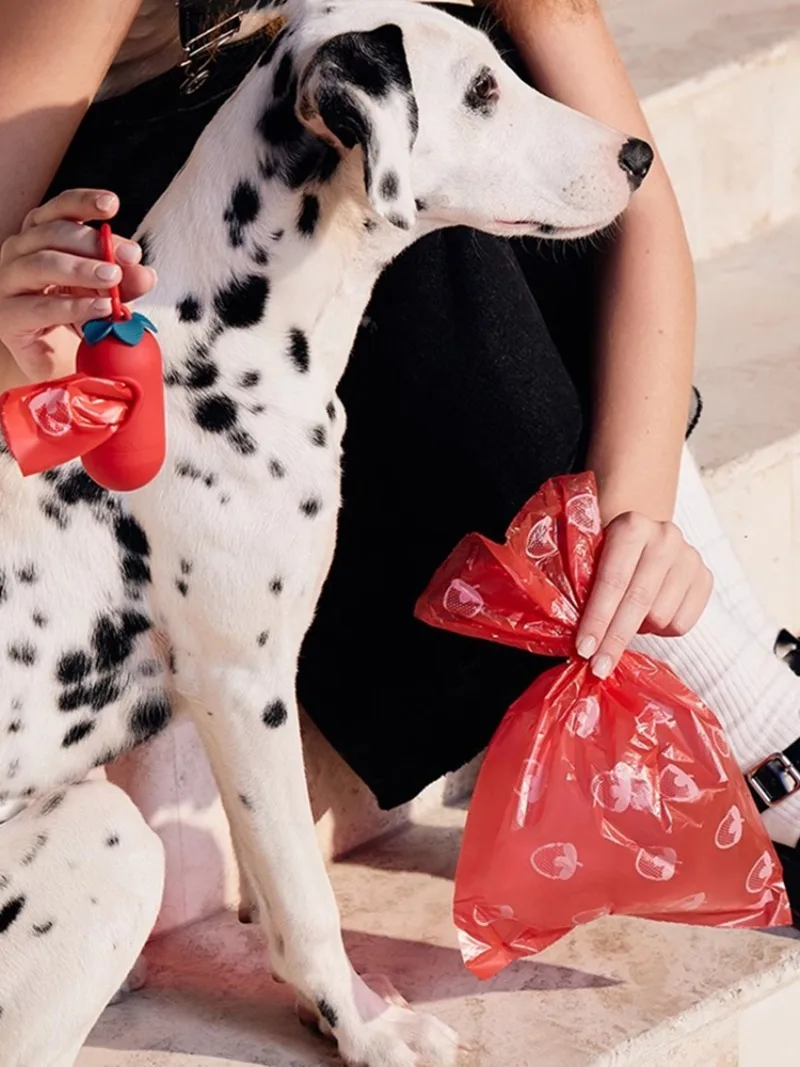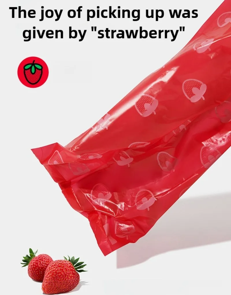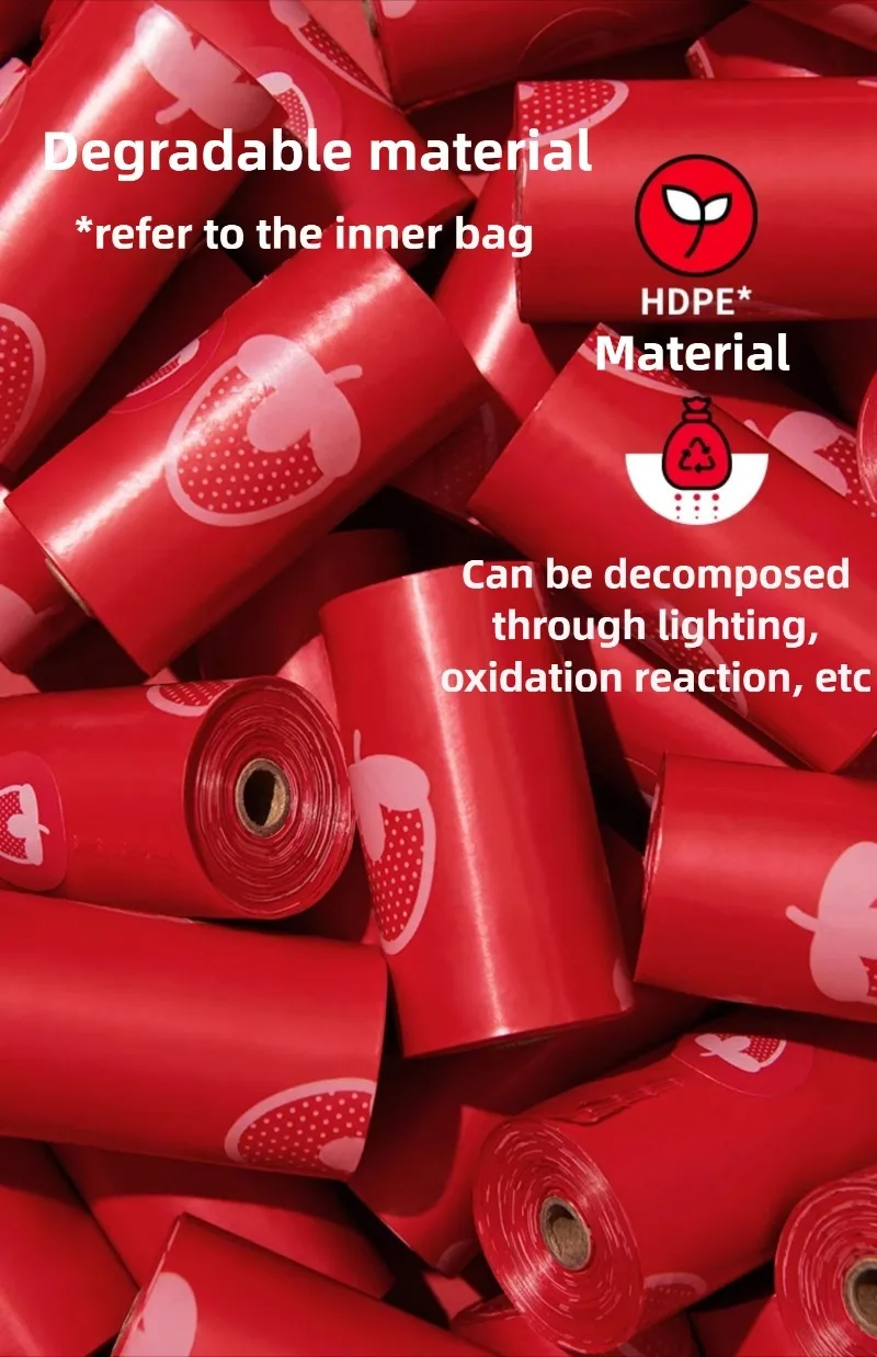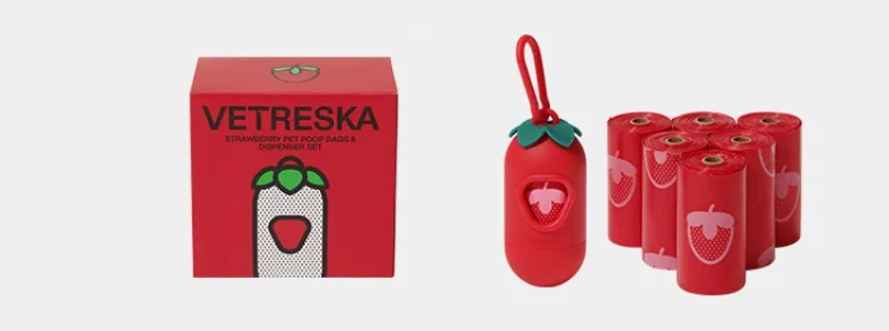 Dispensador de bolsas para excrementos de perros, 7 rollos, fragante de fresa, bolsa de basura ecológica para perros, bolsa de basura gruesa biodegradable para cachorros, recoger