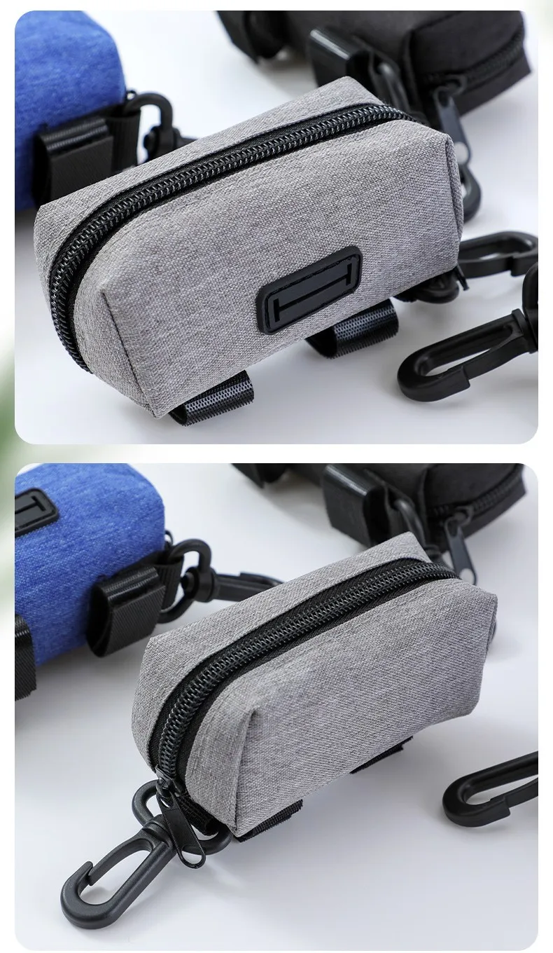 buena calidad, muy practico y cómodo , me llego en su tiempo, caben hasta 3 rollos de bolsas, así nunca me quedo sin bolsas para recoger las cosas de mis perros.