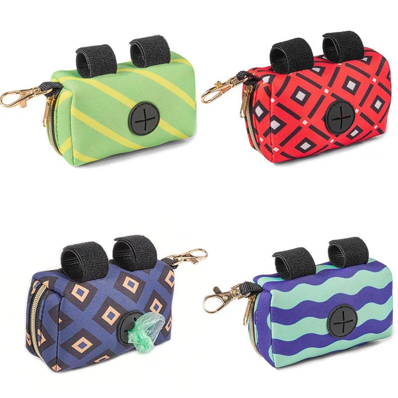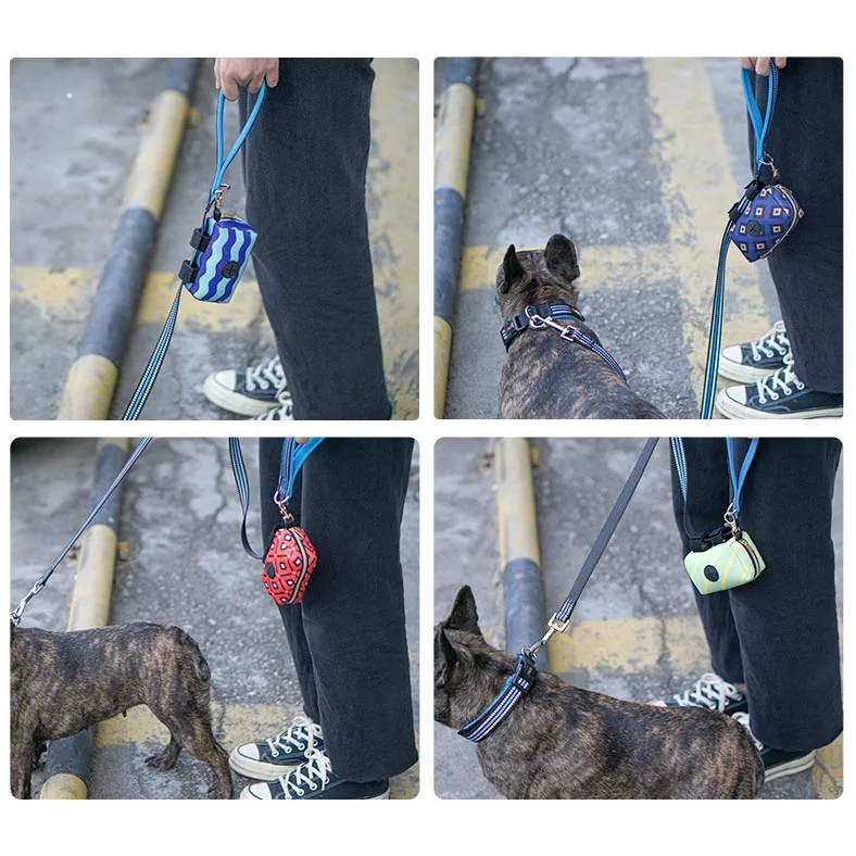 Dispensador de bolsas de lona para excrementos de mascotas y dispensador portátil de bolsas de basura para perros con mosquetón, accesorios de soporte, suministros para mascotas