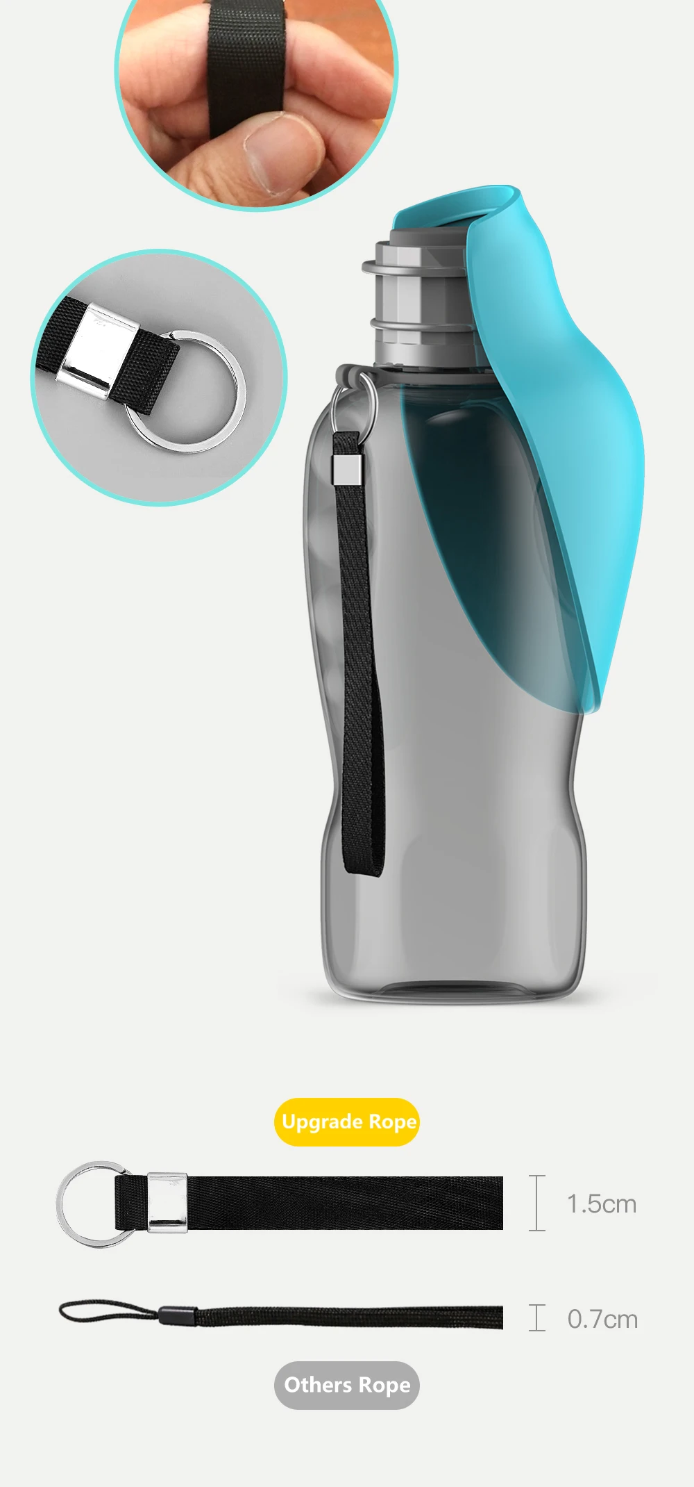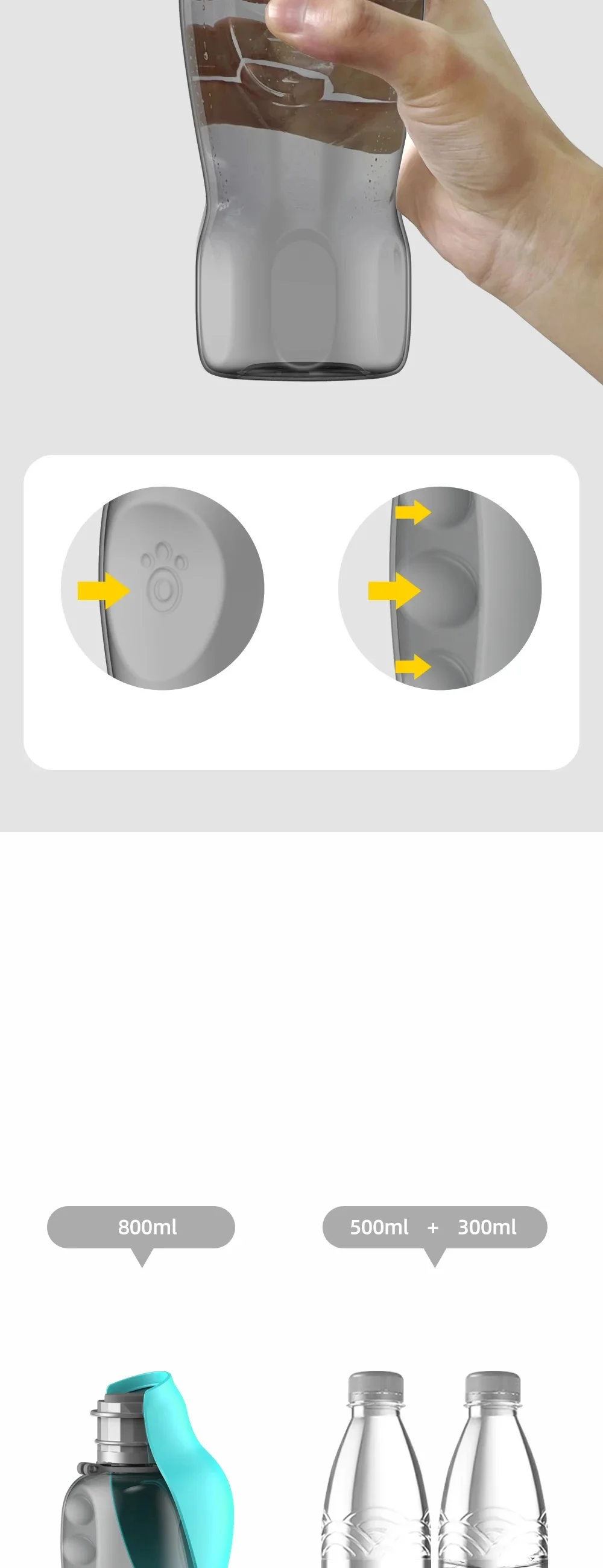 Botella resistente con gran capacidad. muy útil para perros grandes. Bandeja plastica muy resistente. Fácil de llevar para las actividades del perro.