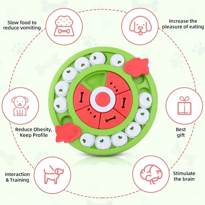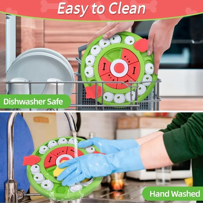 Fácil de limpiar: la superficie lisa del cuenco Iq facilita una limpieza rápida y sin complicaciones para los padres de mascotas.Diseño de alimentación lenta: promueva hábitos alimentarios saludables con nuestro tazón para perros con alimentación lenta, lo que reduce el goteo y ayuda a la digestión.Juguete versátil para mascotas: no solo para perros, nuestro rompecabezas para gatos es un regalo interactivo tanto para gatos como para perros.Material antideslizante y duradero: fabricado con plástico robusto, nuestro cuenco Iq garantiza una experiencia de alimentación segura y antideslizante para su mascota.Entrenamiento interactivo de IQ: fomente la mente de su mascota con nuestro tazón interactivo de IQ, diseñado para estimular y desafiar sus habilidades cognitivas.Juguete inteligente para perros Este juguete para perros está diseñado para aumentar el coeficiente intelectual de su perro.A diferencia de los juguetes tradicionales para perros, este juguete para perros permite que su perro sea más inteligente a través de su propia iniciativa mientras lo recompensa con golosinas.Fomenta a tu perro a utilizar su cerebro y promueve el desarrollo del cerebro.Este juguete para perros también entrena las habilidades de tu perro.Nota: Es mejor para perros con formación básica.Material seguro y fácil de limpiar Este juguete inteligente para perros está hecho de material PP de calidad alimentaria, totalmente seguro para los perros.Es fácil de limpiar, basta con enjuagarlo con agua y secarlo de forma natural o soplarlo con un ventilador.Puedes mantenerlo limpio e higiénico en todo momento para que tu perro siempre pueda disfrutar de delicias sabrosas y sabrosas.Alimentación lenta Cada granero en el rompecabezas de comida para perros solo puede contener una pequeña cantidad de comida y su perro necesita jugar para obtener la comida.Este diseño reduce eficazmente la velocidad de la comida de su perro y corrige su mal hábito de comer demasiado rápido.Aumenta el tiempo y la dificultad para que su perro se alimente, reduce la tensión en el tracto gastrointestinal, evita el molesto digestivo y lo mantiene más saludable.Regalo de cumpleaños para perros: este juguete para perros es adecuado para muchas razas de perros, es el mejor juguete para perros grandes, medianos y pequeños, este juguete rompecabezas puede estimular la inteligencia de su perro, es la primera opción para regalos de vacaciones o cumpleaños.Cuando su perro reciba su propia recompensa de comida, estará emocionado y le ayudará a reducir el aburrimiento, la ansiedad y el comportamiento destructivo.