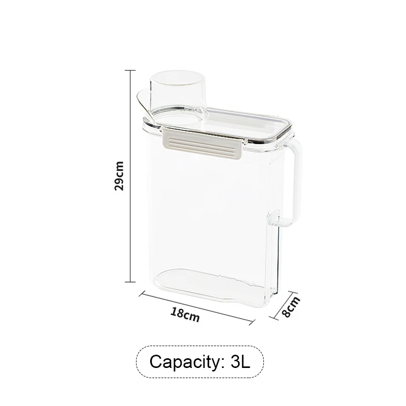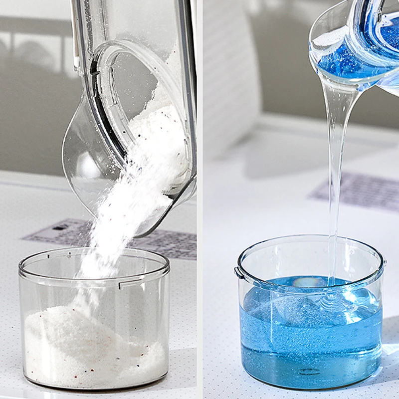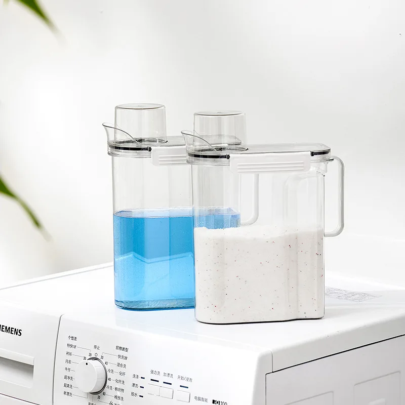Dispensador de detergente para ropa recargable, caja de almacenamiento de polvo, suavizante de lavado transparente, contenedor de líquidos para almacenamiento de lejía con tapas