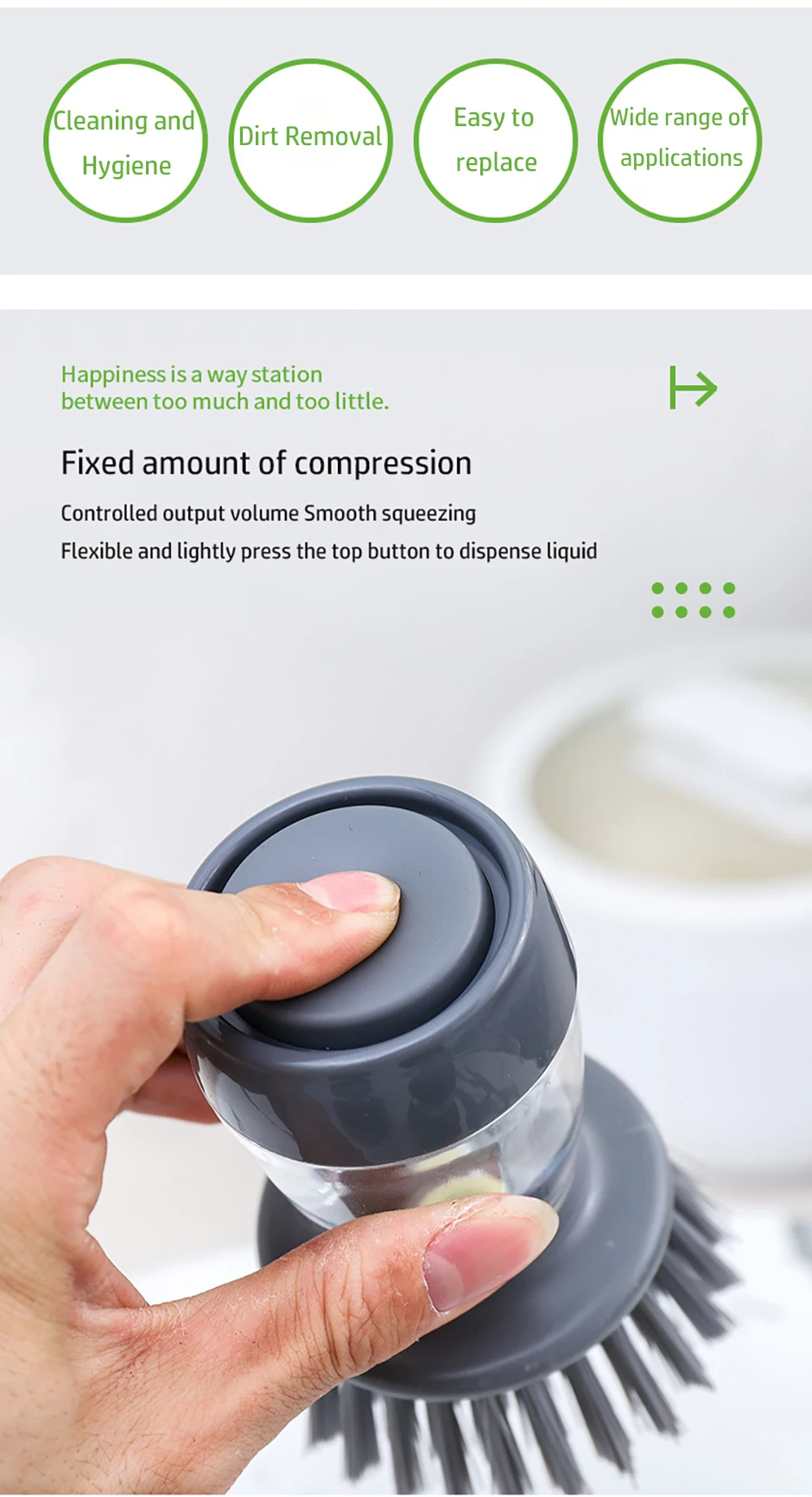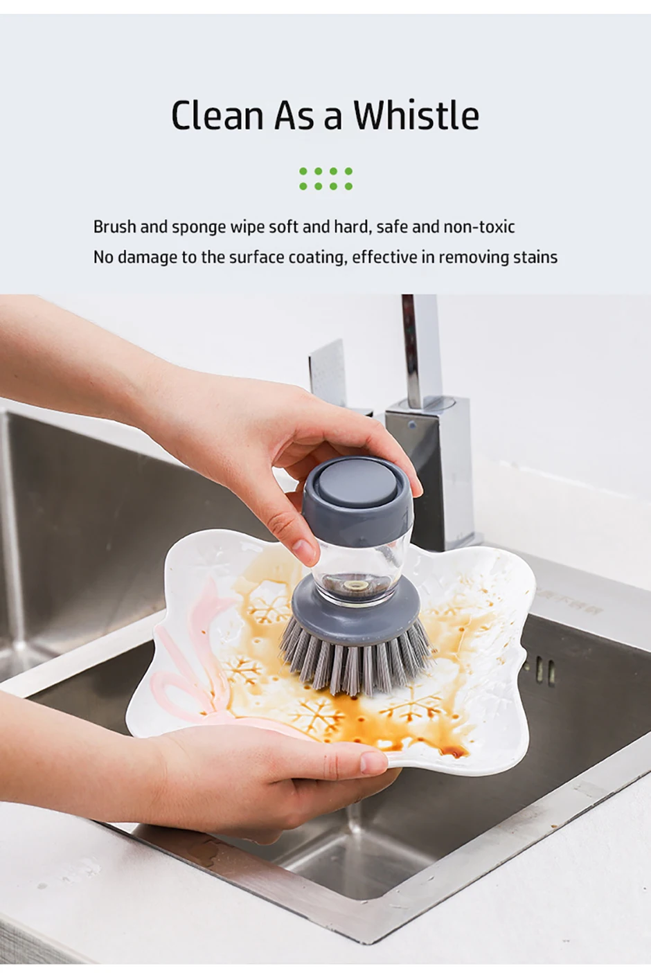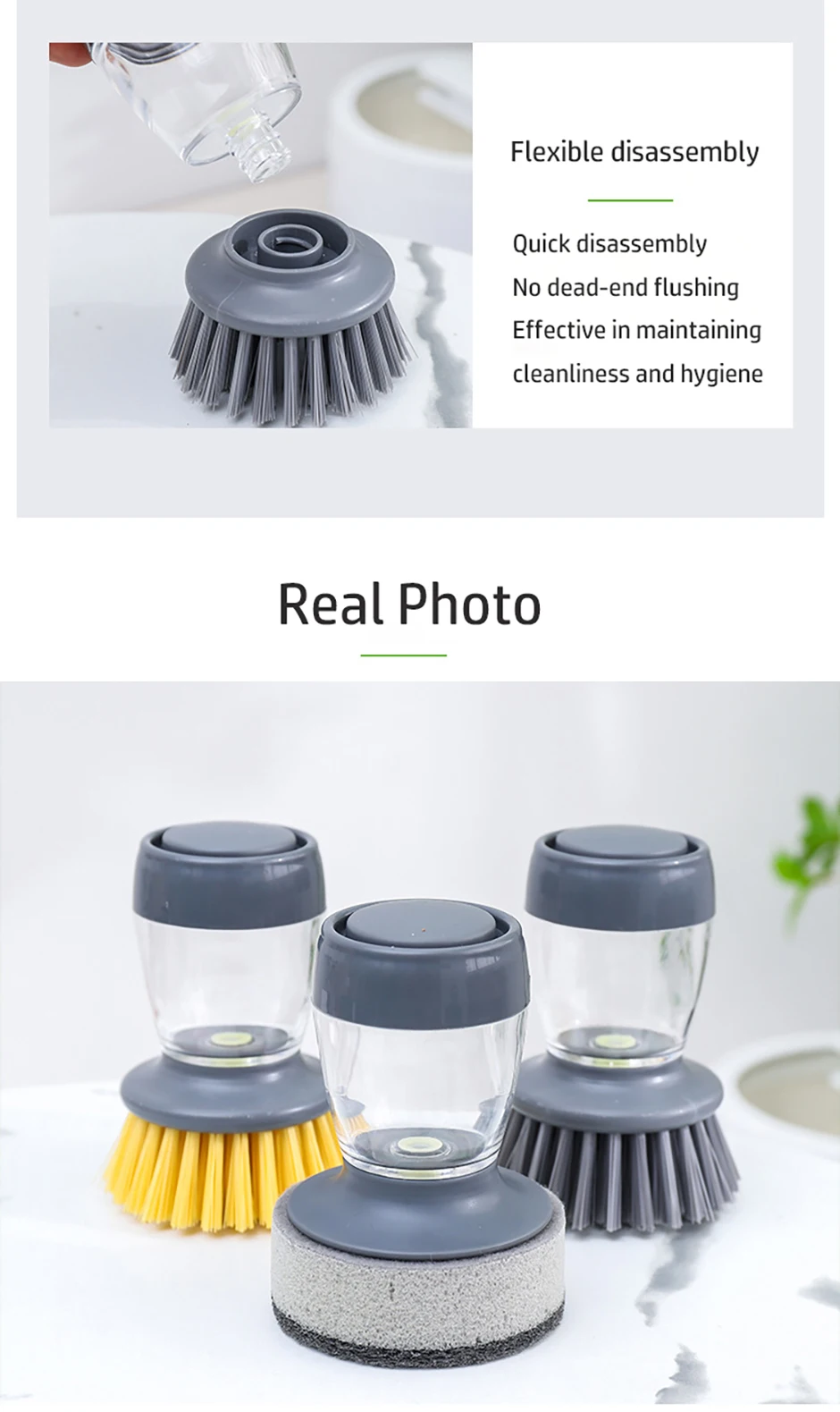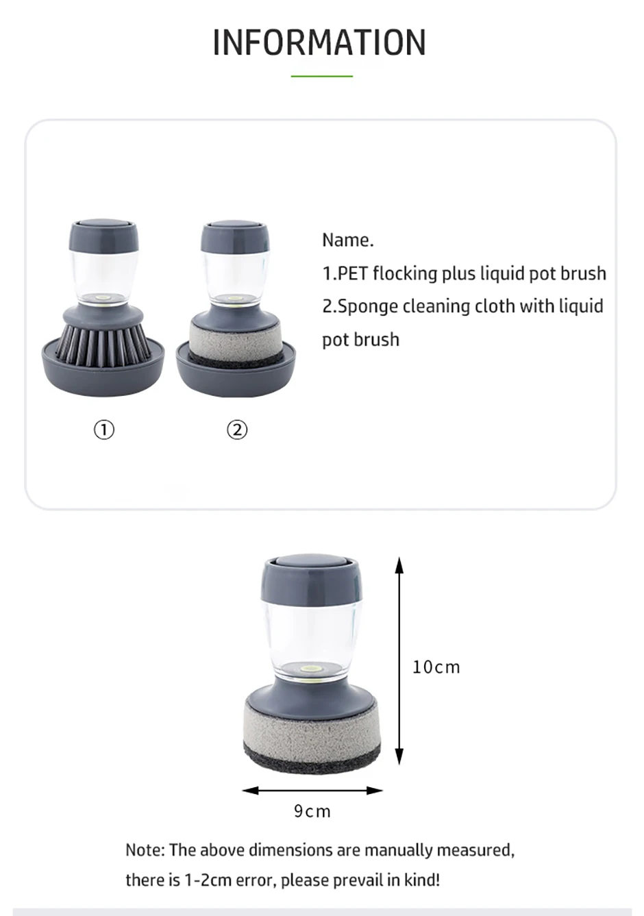 • Portátil y conveniente:Esta herramienta para lavar platos dispensadora de jabón es compacta y fácil de transportar, lo que la hace perfecta para la limpieza mientras viaja.