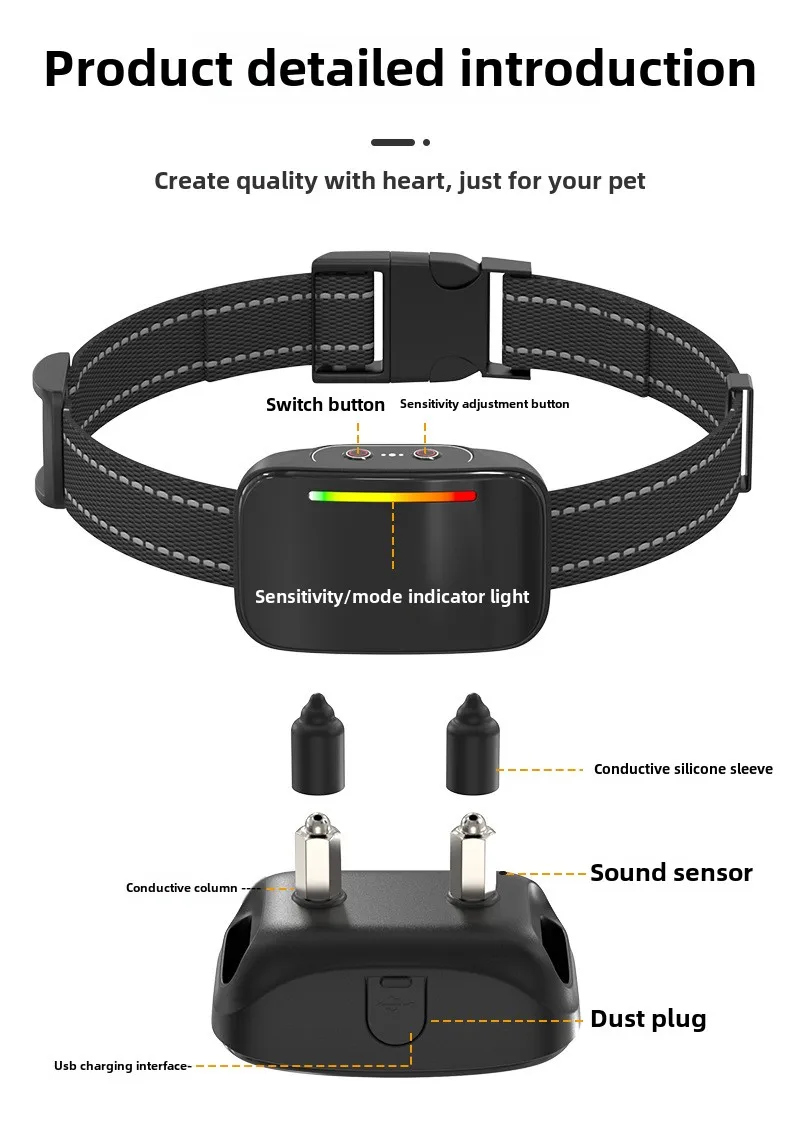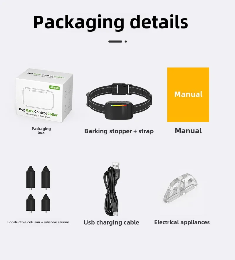 Descripción:Tope automático para ladridos, Collar de choque eléctrico antidisturbante, recargable, impermeable, tapón para ladridos de perros