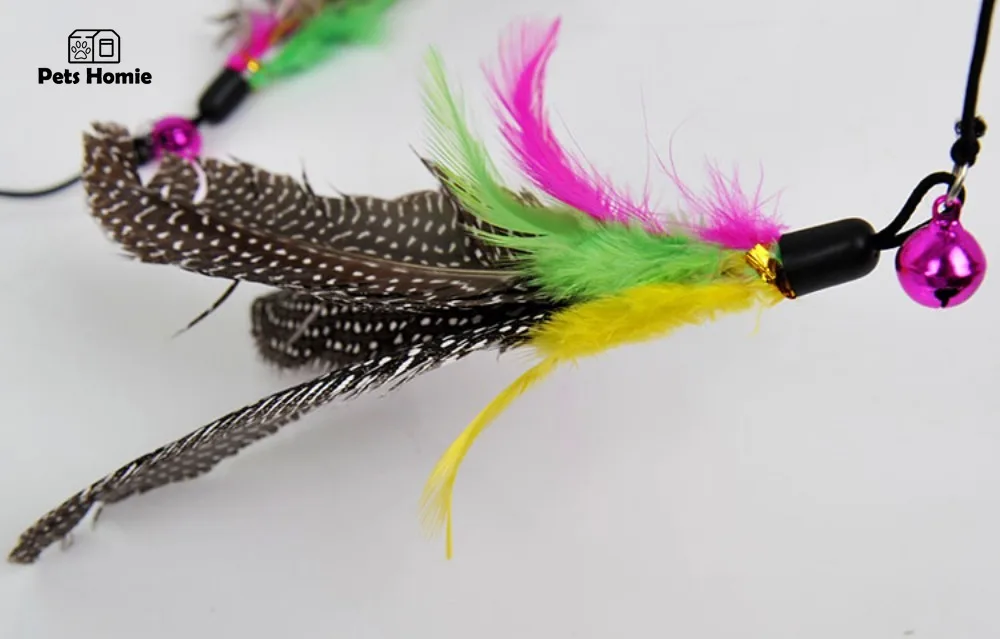 La cuerda elástica está colgada de plumas de pollo y habrá campanas relajantes.¡A el gato le gusta mucho!