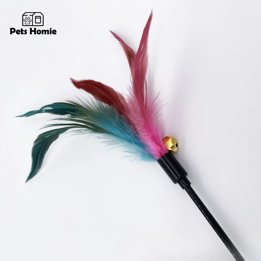 1x caña de juguete interactiva para gatitos y gatos con campana y pluma