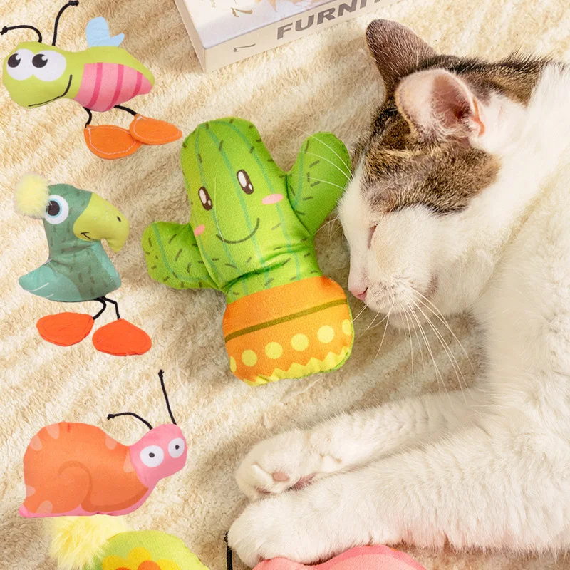 Divertido juguete de peluche de gato con hierba gatera, lindos juguetes masticables de dibujos animados para gatos, perros pequeños, accesorios para gatitos, mascotas juguetes para gatos