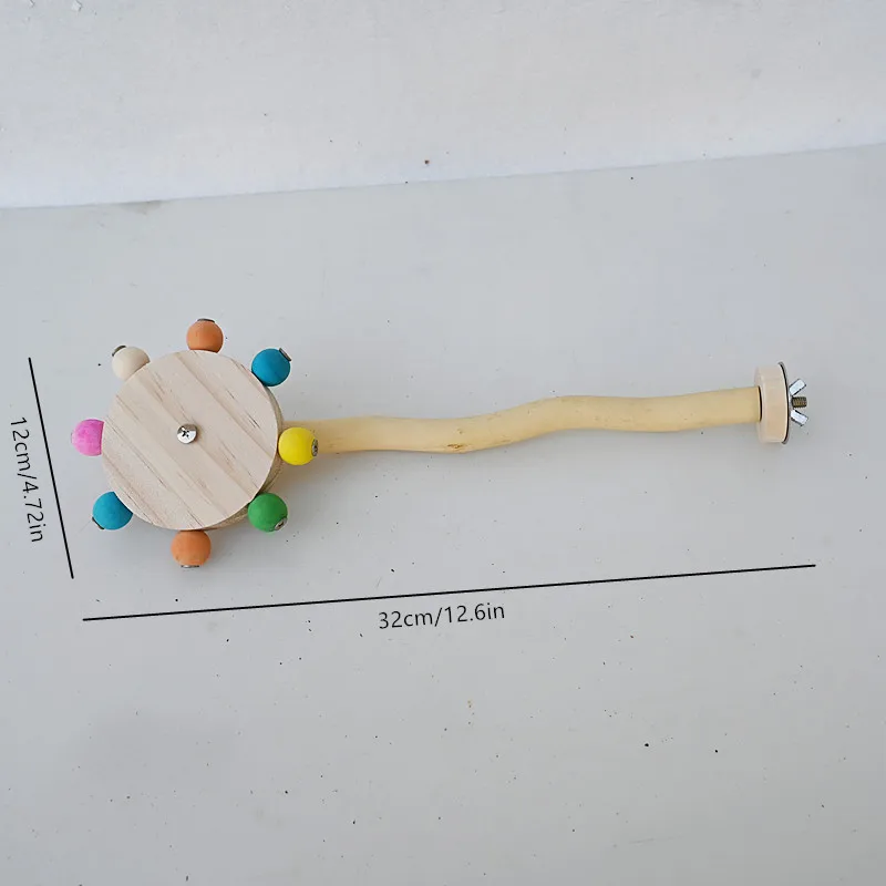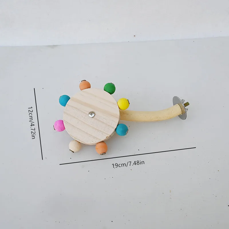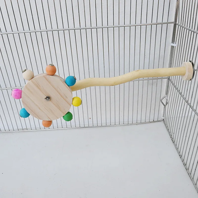 Divertido juguete de percha con bolas giratorias, soporte interactivo de madera para pájaros, juguete de forrajeo de loro colorido, molino de viento giratorio para molinos