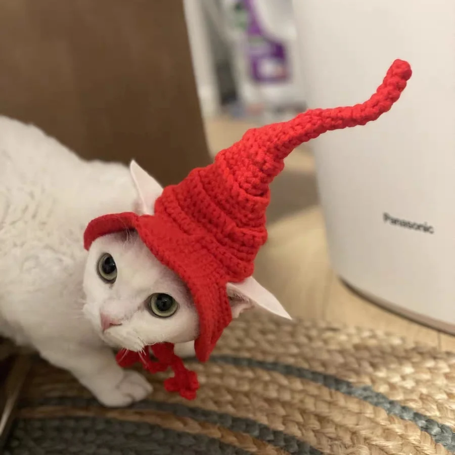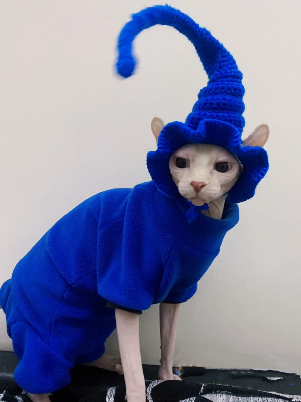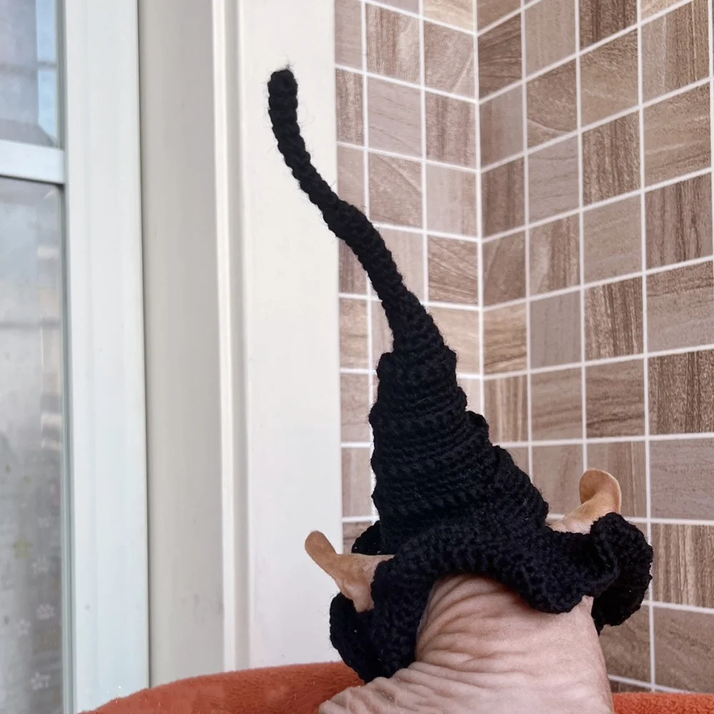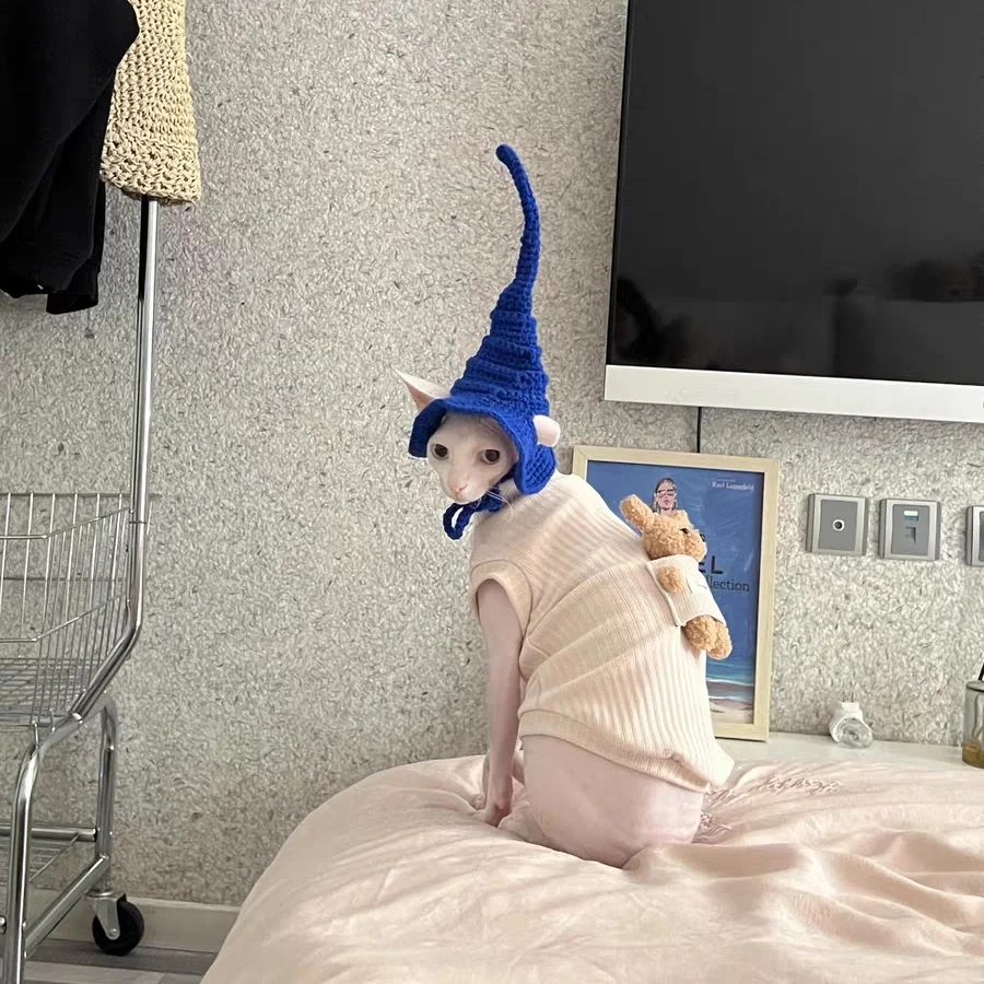 Divertido lindo sombrero de mago mágico de Halloween Navidad Año Nuevo para Sphynx Cat Sombreros de cosplay de lana tejidos a mano largos y puntiagudos para gato sin pelo