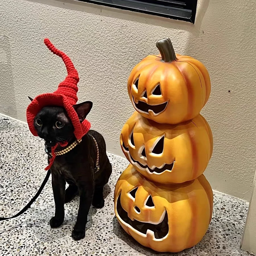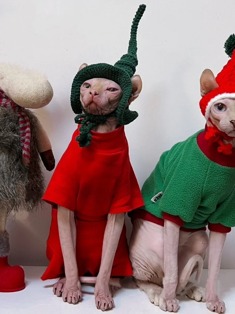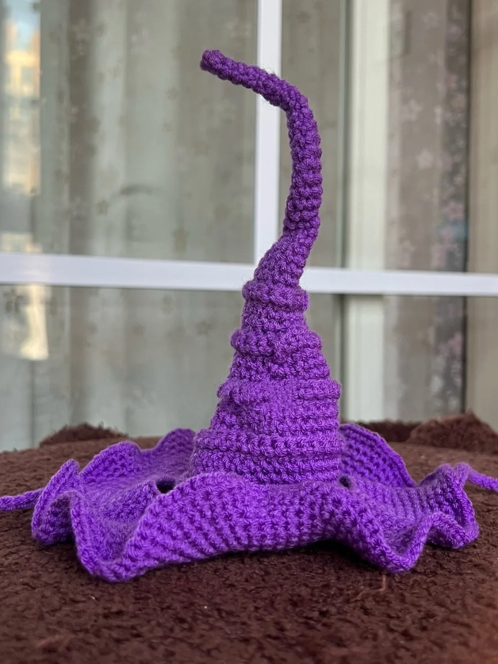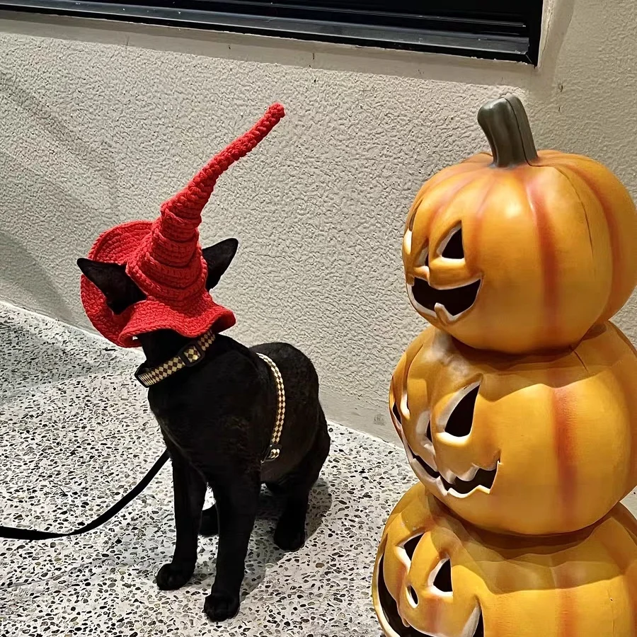 Divertido lindo sombrero de mago mágico de Halloween Navidad Año Nuevo para Sphynx Cat Sombreros de cosplay de lana tejidos a mano largos y puntiagudos para gato sin pelo