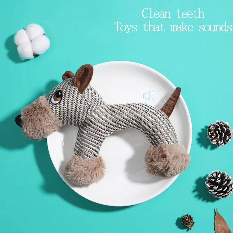 Divertido perro de dibujos animados chirriante, juguete de peluche para perro, juguete de entrenamiento calmante con dientes molares, juguetes para cachorros y gatos, suministros de entrenamiento interacto