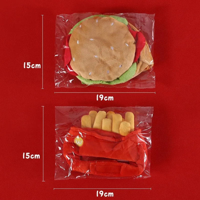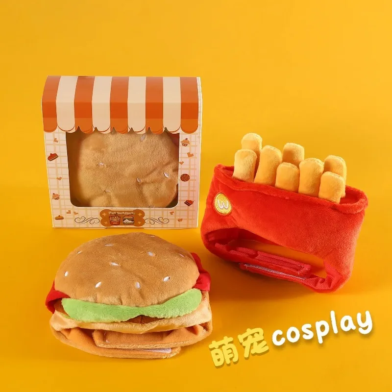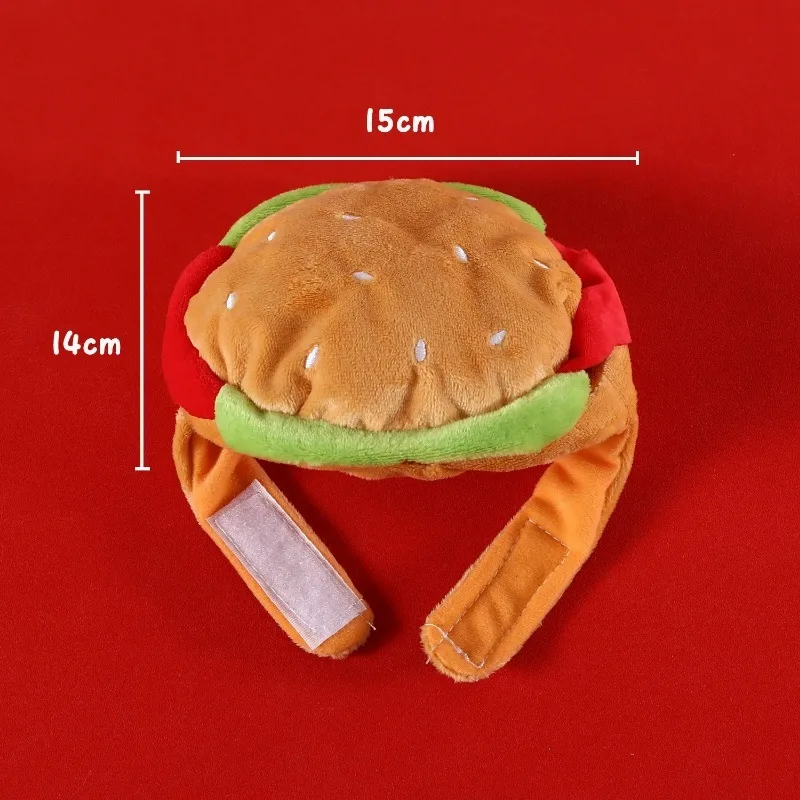 Divertido sombrero para mascotas hamburguesa patatas fritas dibujos animados lindo sombrero gato oso de peluche perro fotografía sombreros cálido auriculares Pomerian accesorios para perros