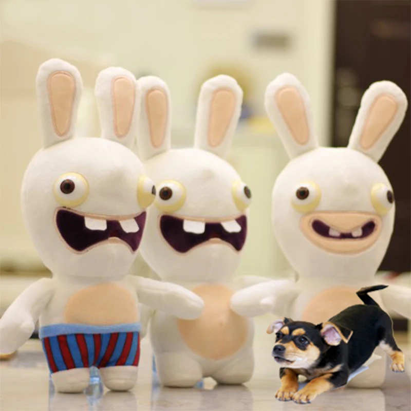 Divertidos juguetes para perros, cachorro de mascota, chirriador, sonido de peluche chirriante, conejo loco, relleno de algodón, juguete chirriante para perro pequeño