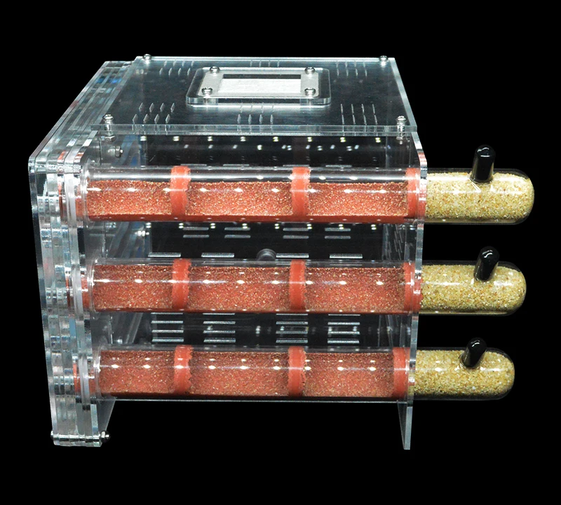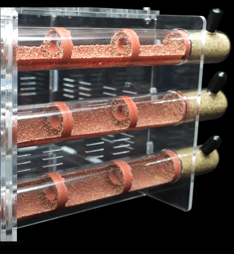 1.Nest se divide en dos partes, acrílico y nido de bambú, separación seca y húmeda, las hormigas pueden elegir su humedad favorita para vivir.