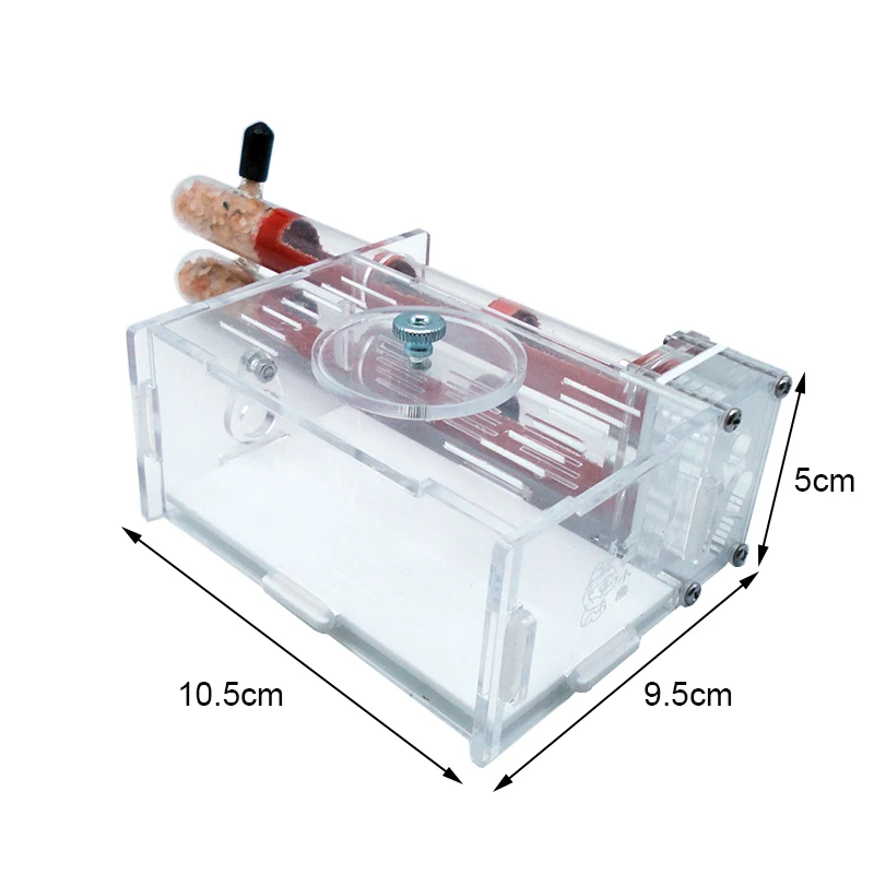 Es una excelente mini granja de hormigas. Las hormigas toro pueden moverse con facilidad por la entrada y los tubos de ensayo, y hay suficiente espacio en el área exterior para un comedero. Es muy fácil de observar, lo que permite estar atento a tu reina y a su descendencia. La construcción es sólida, con un ajuste preciso y fácil de ensamblar. Ya he pedido más. 👍
