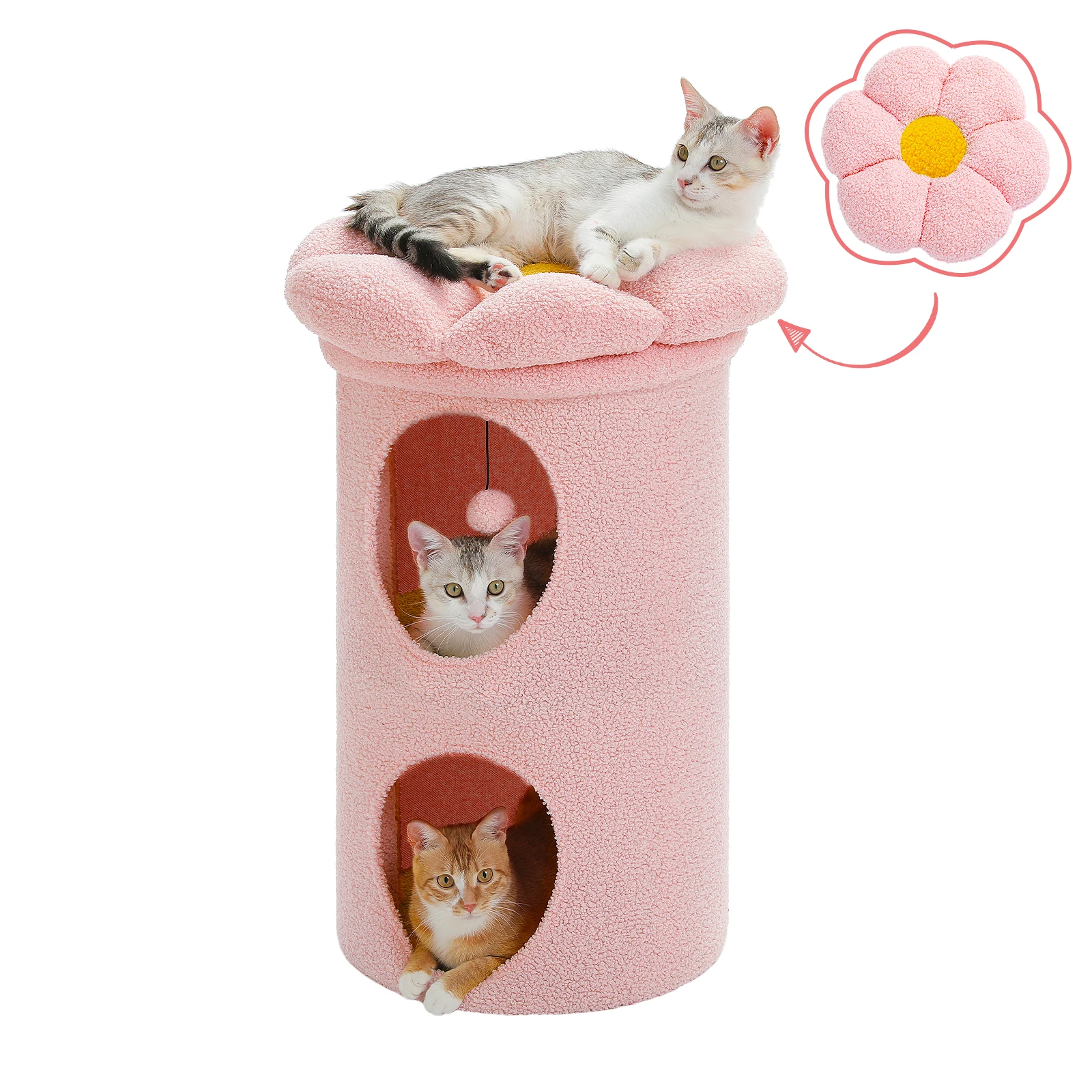 2. La inspiración del diseño de la cama de la casa del gato proviene de las flores, con una percha superior en forma de pétalo, de moda y hermosa.