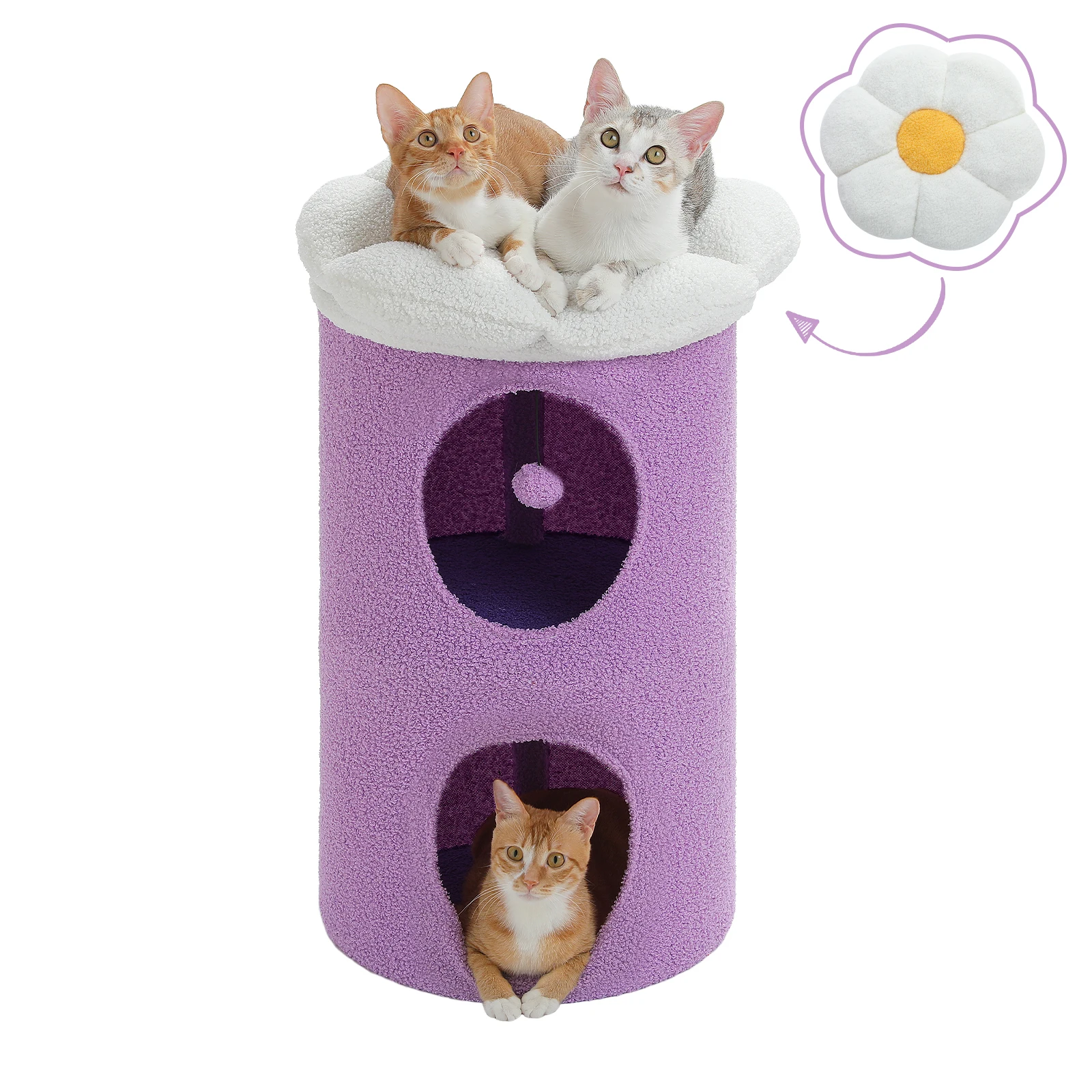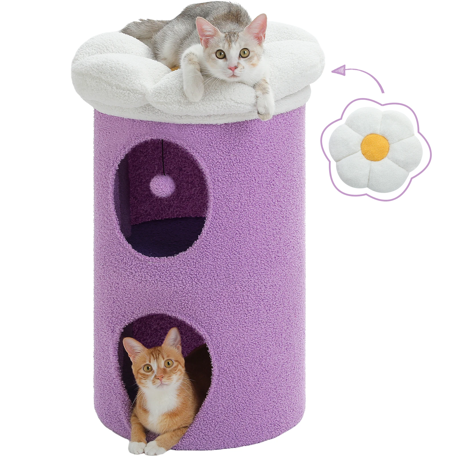 Casa para gatos de dos pisos con condominios grandes y acogedores, cama para gatos espaciosa con percha de flores de lujo, Bola de Pompón, muebles para gatos para interiores