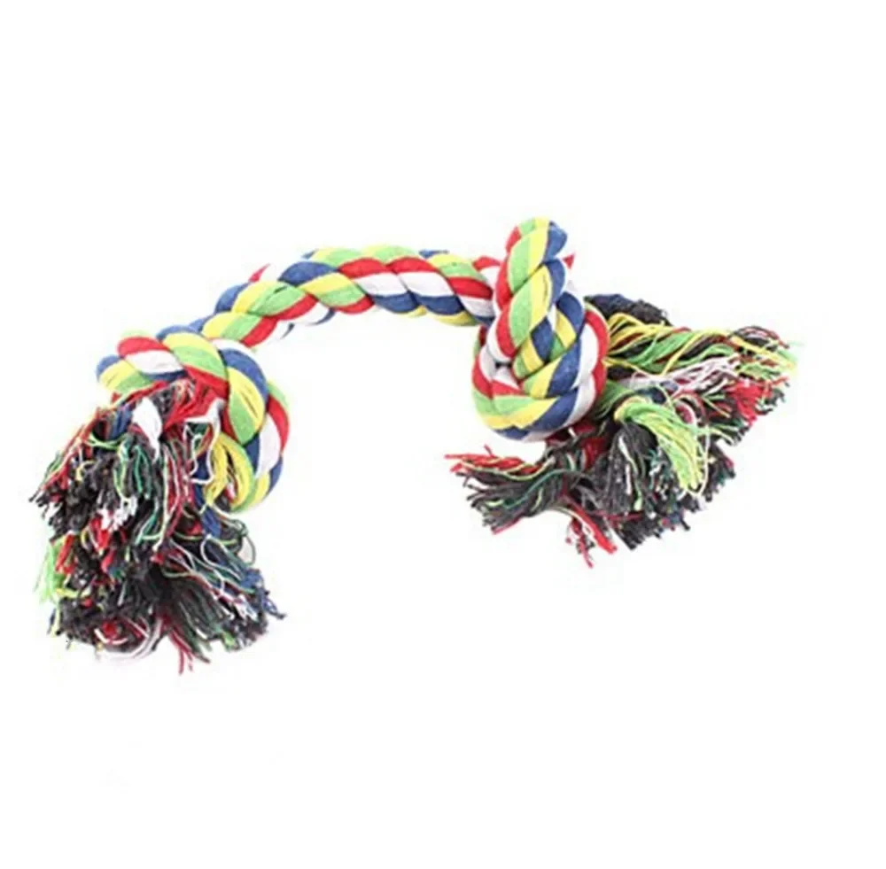 Venta caliente cuerda de algodón trenzada cuerda para perros juguetes duraderos para masticar para mascotas en forma de hueso doble cuerda trenzada juguetes para perros S M L