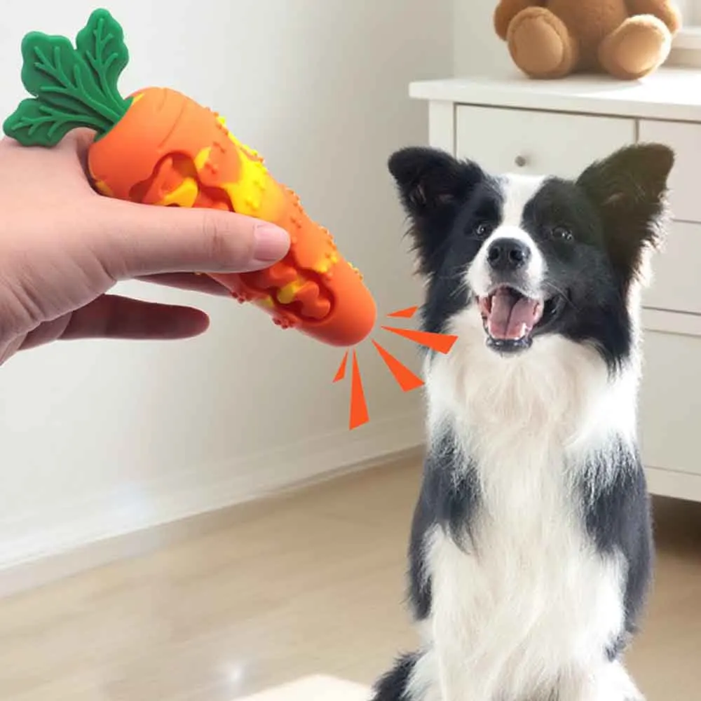 Dog Chew Toy: Durable Squeaky Carrot Plush, Self-Entertainment for Boredom Relief, Teething Aid for Puppies & Adult Dogs