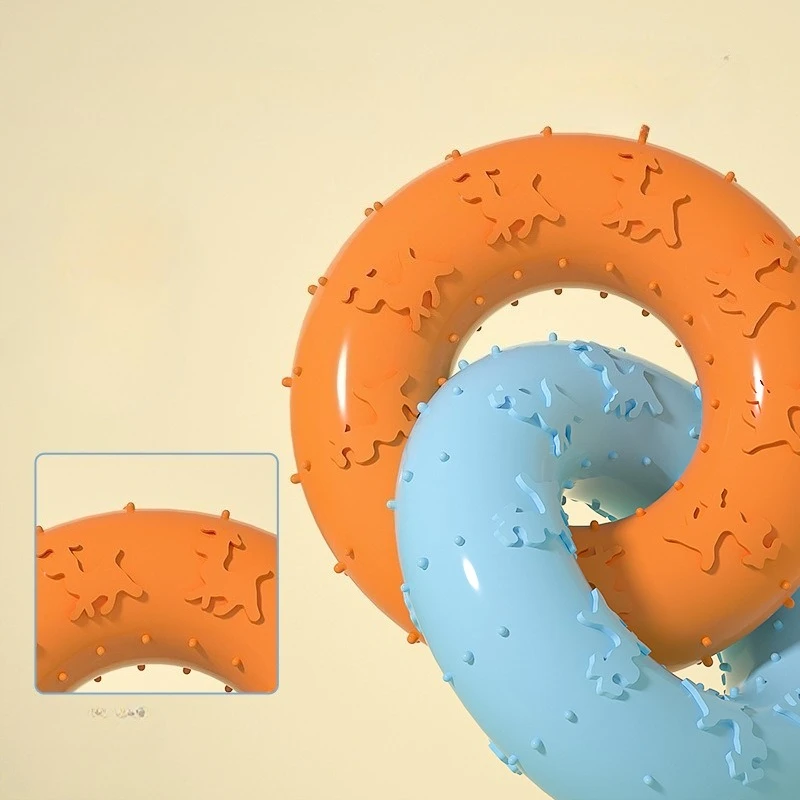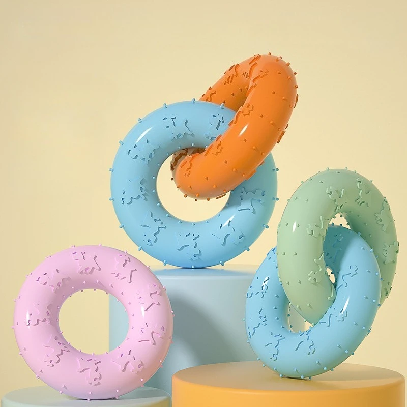 Dog Chew Toys for Cleaning Teeth Pink Soft Rubber Bone Funny Ball Interactive Donut Treat for Small Medium Dogs Pet Gifts