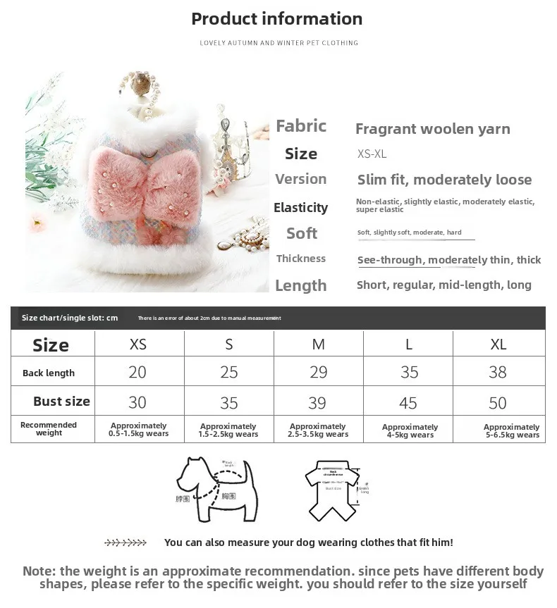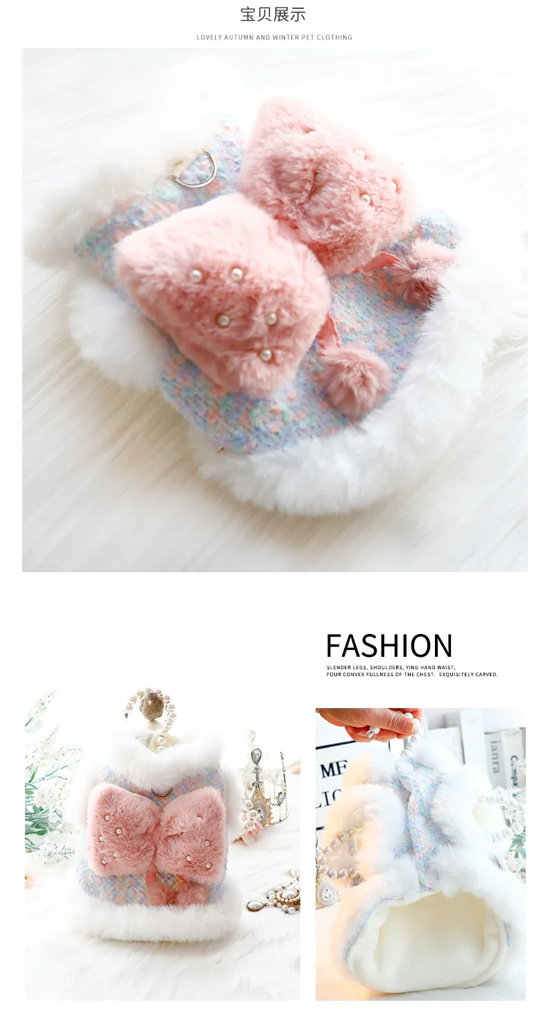 Dog Clothes Autumn and Winter Clothing Thick Cat Princess Cotton-padded Clothes Fluff Traction Small Dog Teddy Pet Supplies
