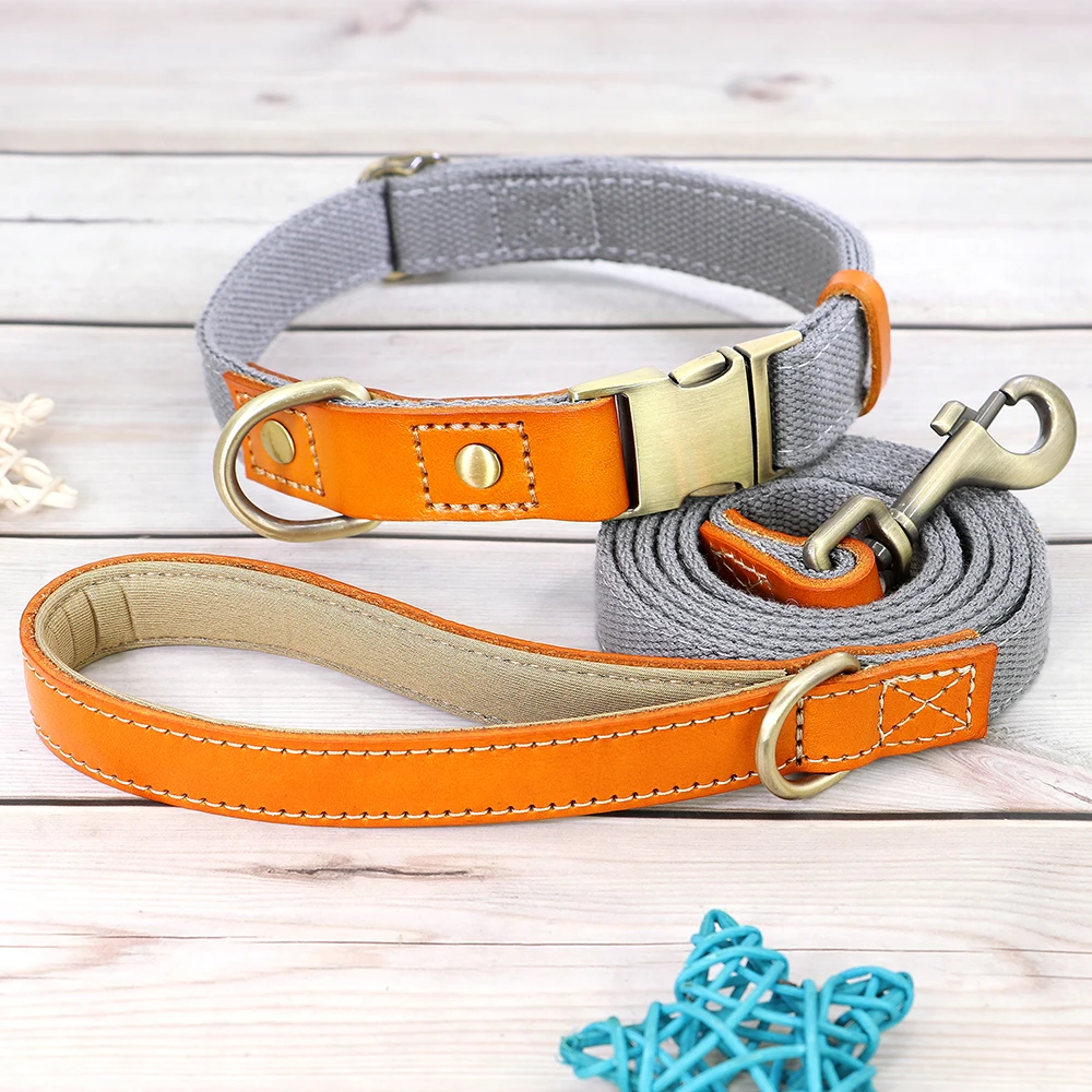 Juego de correa para Collar de perro, collar de cuero de nailon para perros, collares con etiqueta de identificación para mascotas, cuerda de plomo para caminar de 5 pies para perros Pug