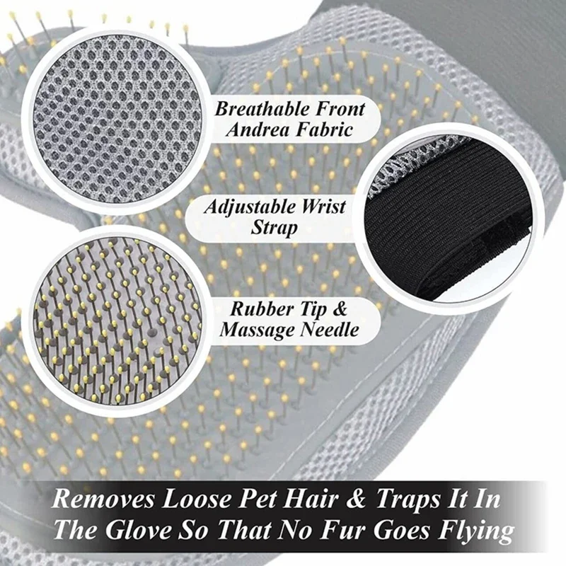 - El diseño de cinco dedos con puntas de goma y puntas de agujas de acero te ayuda a profundizar y masajear a tus mascotas. Mejora la salud de tus mascotas al aumentar la circulación sanguínea.
