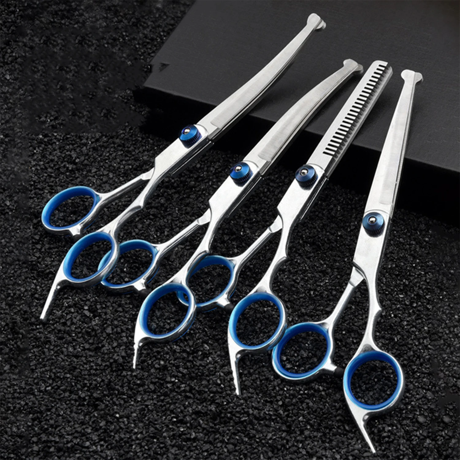 Versatile set includes straight, curved, and thinning shears for all your pet grooming needs