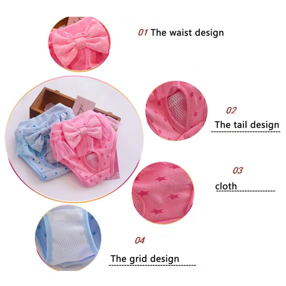 Pantalones menstruales para perros, cómodos, antimagamentos, algodón, cachorro, lazo, pañales, ropa, suministros para mascotas